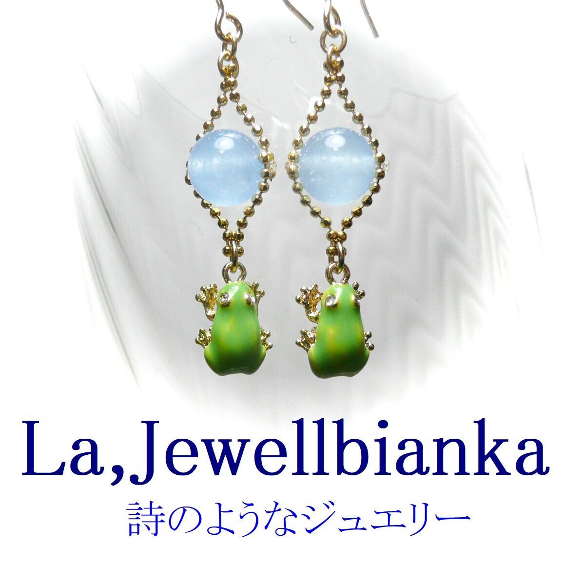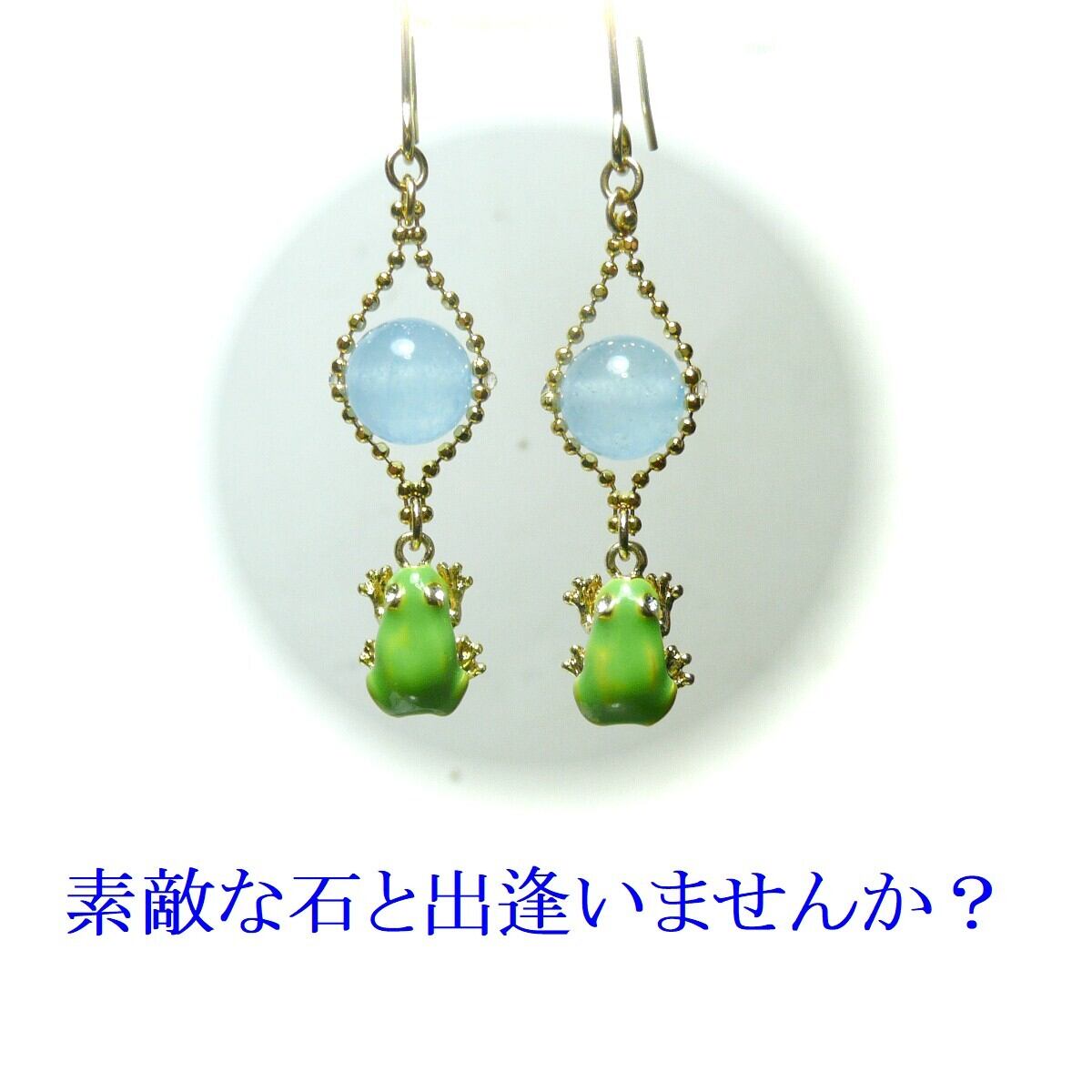 「 アマガエル イヤリング アクアマリン 」と検索なさりご覧下さい。