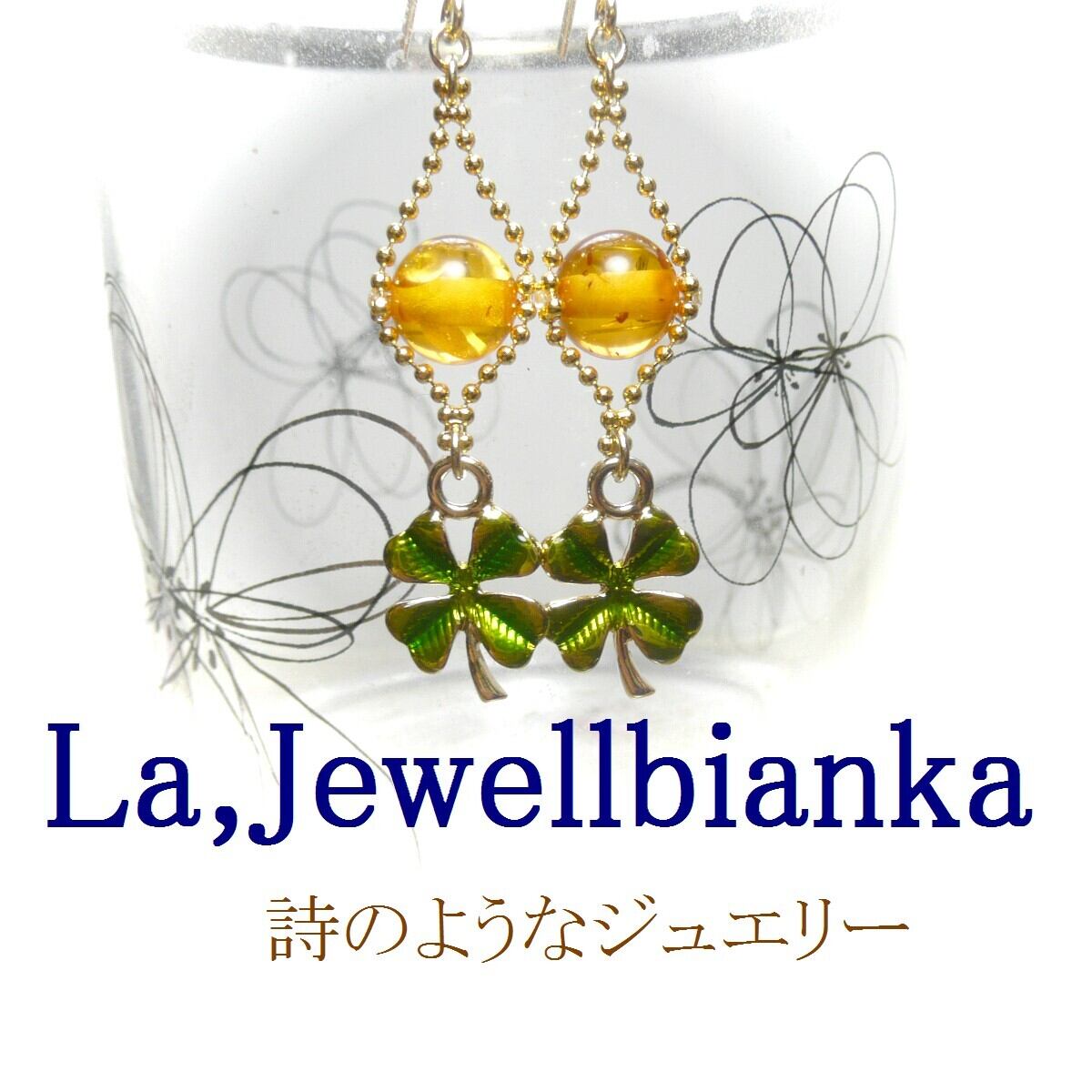 「 琥珀 イヤリング 四葉のクローバー 」と検索なさりご覧下さい。