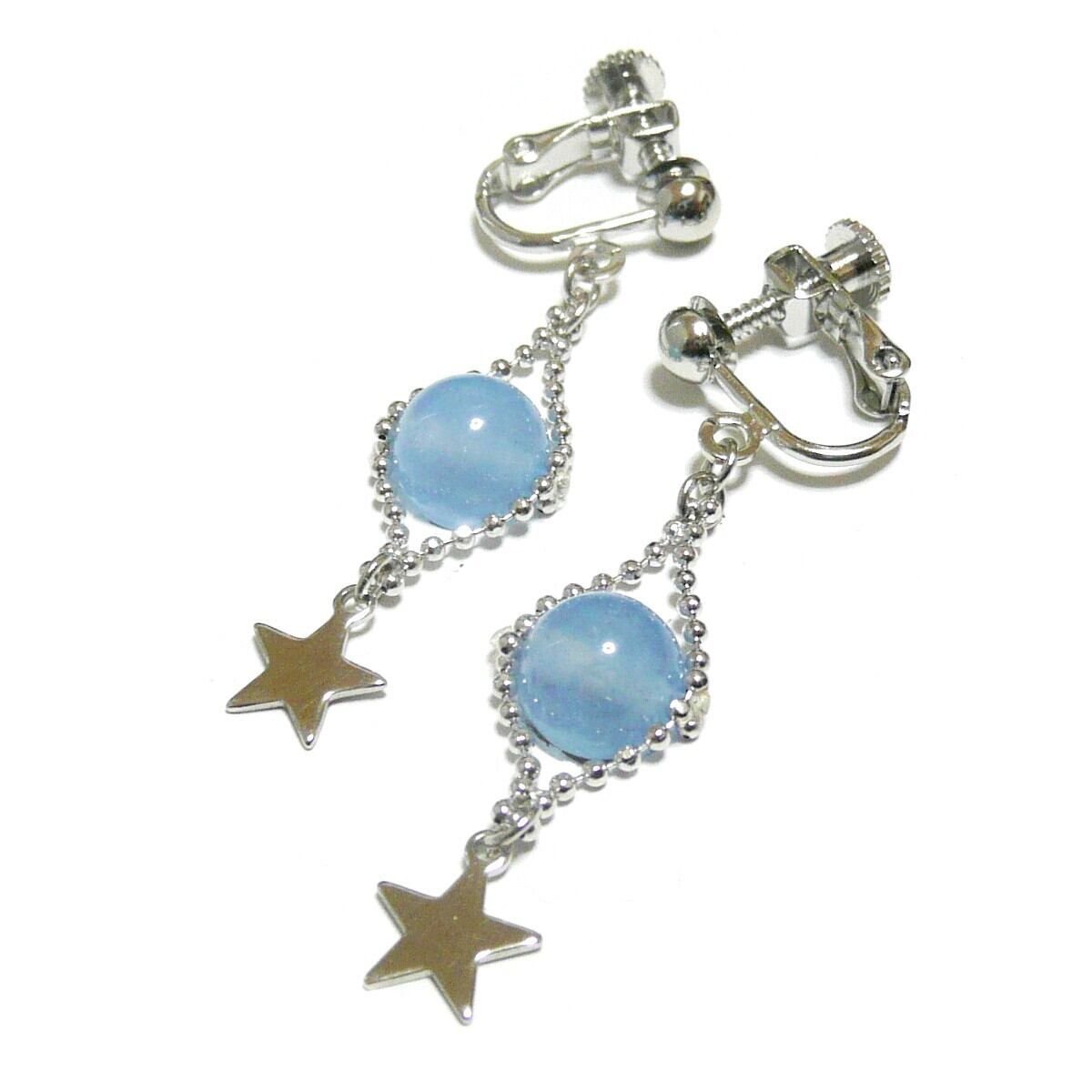 アクアマリン イヤリング 小さな星 藍玉 ブルー 銀色 シルバーカラー 【 Lily スター 】