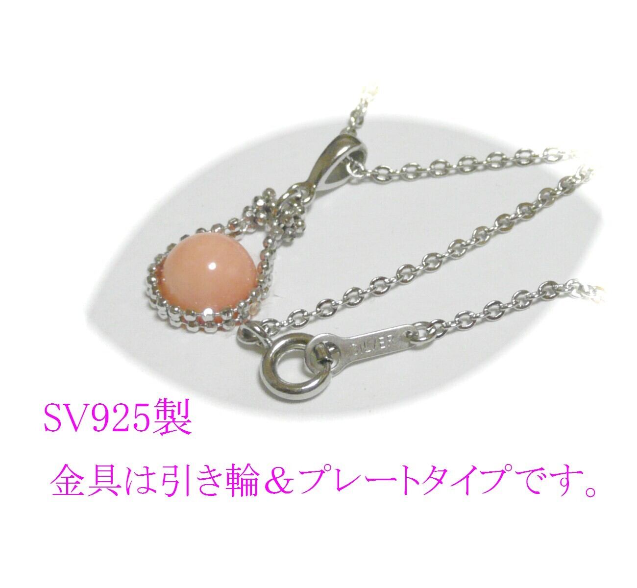 ピンク珊瑚 馬蹄 ペンダント ネックレス さんご コーラル 8mm 銀色 シルバーカラー