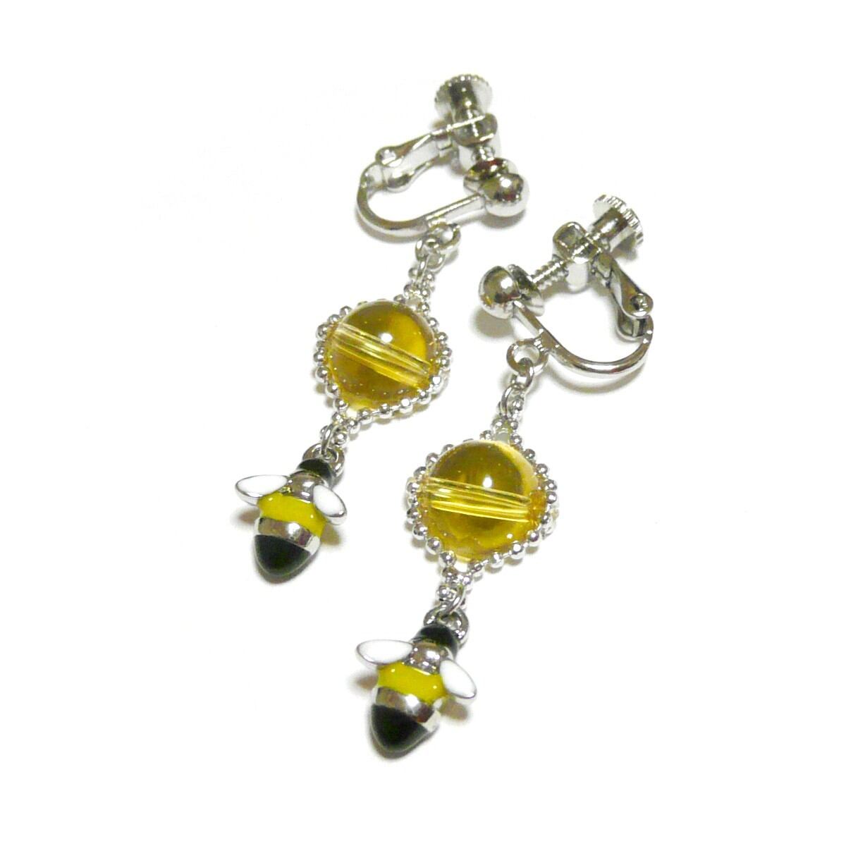 蜜蜂のチャームと共に揺れるイヤリングです。