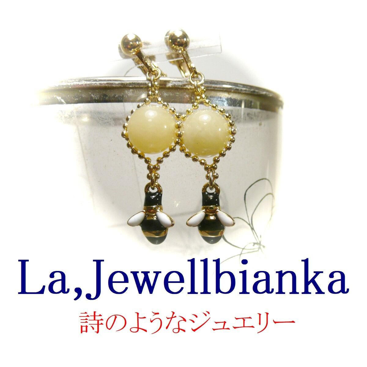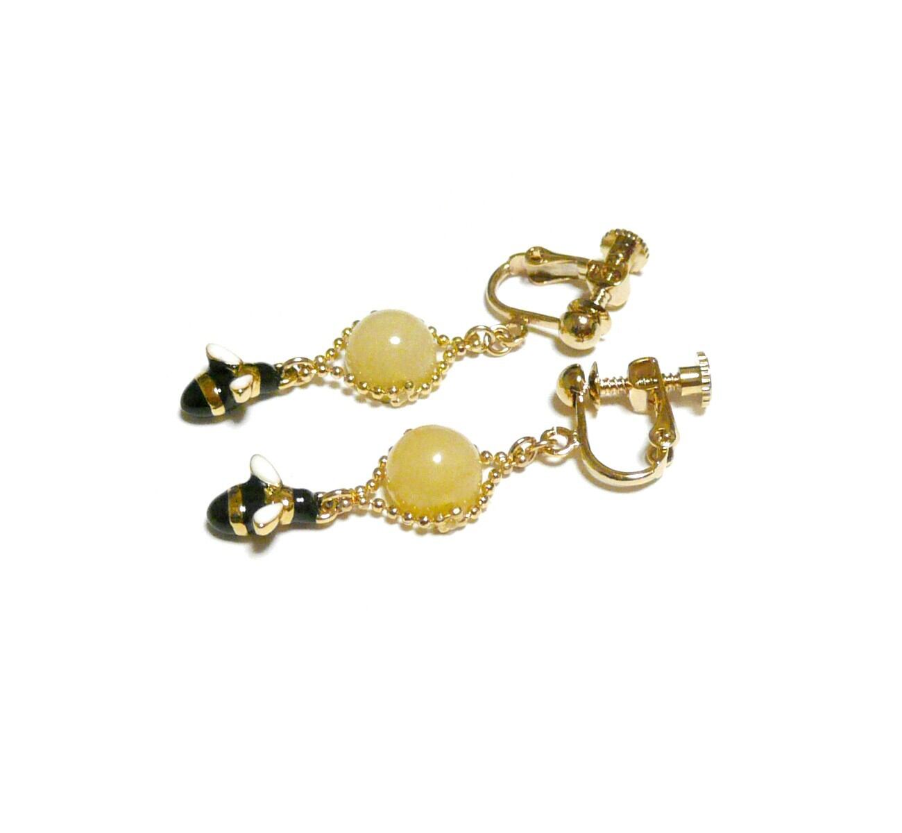 蜜蜂のチャームと共に揺れるイヤリングです。