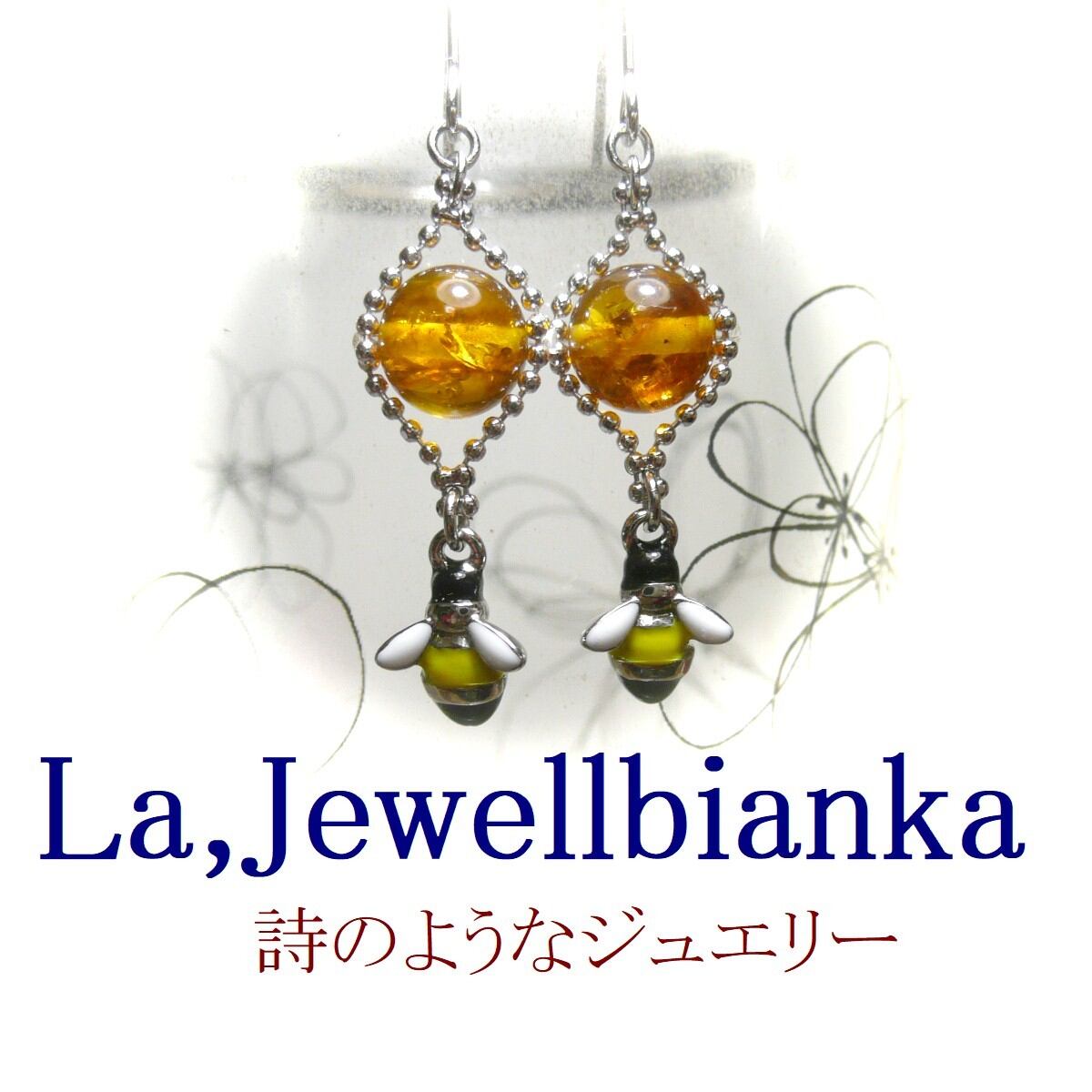 蜜蜂のチャームと共に揺れるピアスです。