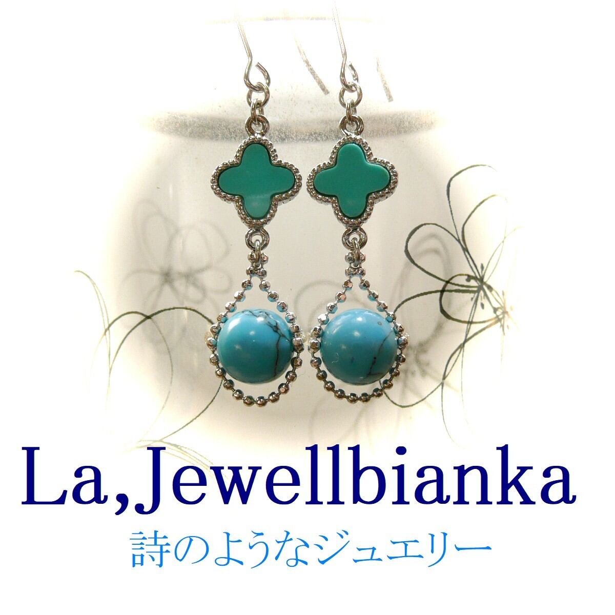 「 ジュエルビアンカ ターコイズ クローバー イヤリング 」で検索なさりご覧下さい。