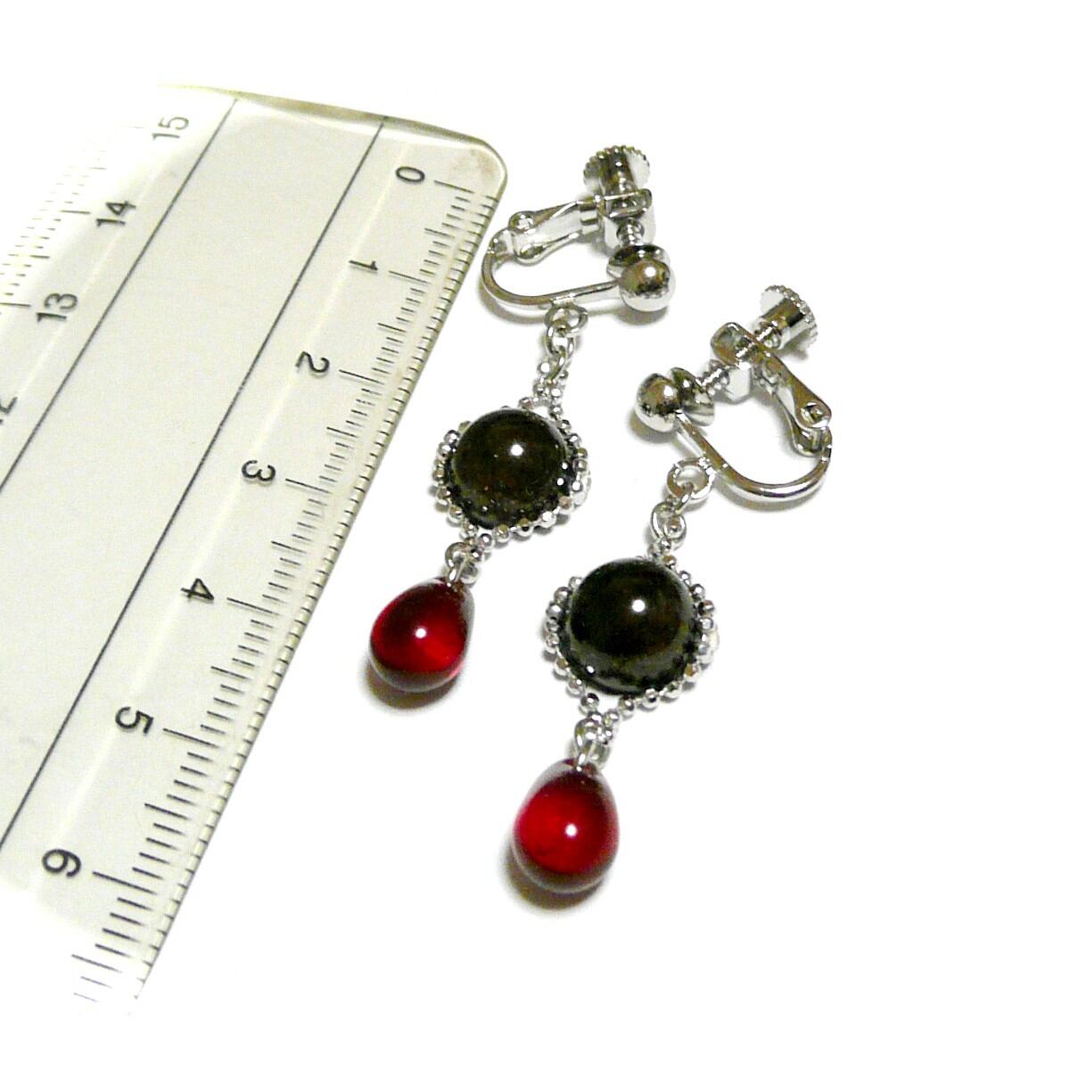 涙のカタチの赤いコハクと共に揺れるイヤリングです。