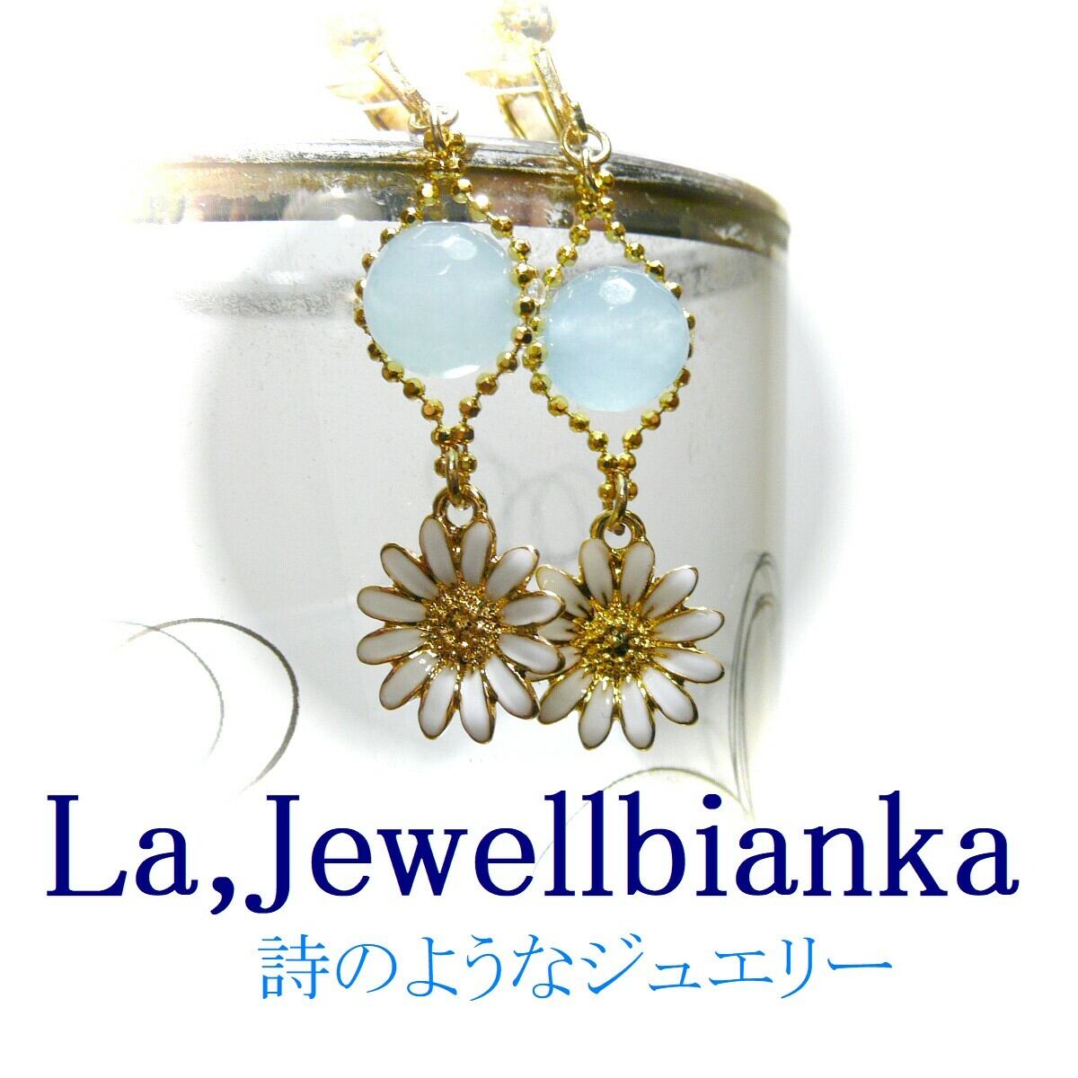 「 ジュエルビアンカ アクアマリン マーガレット ピアス 」で検索なさりご覧下さい。