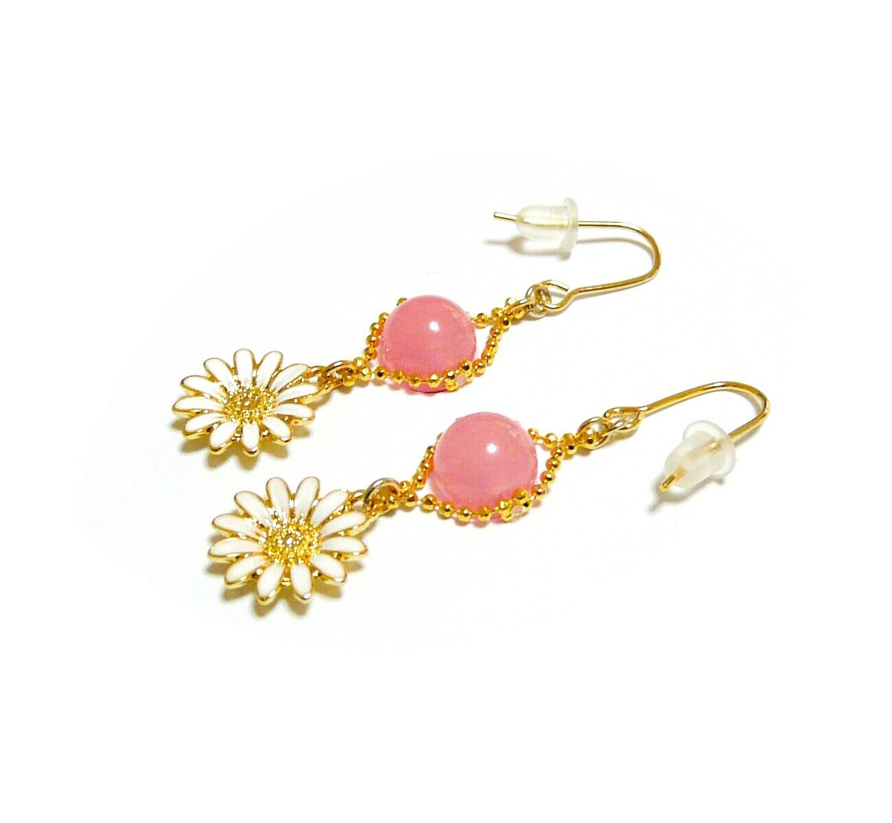「 ジュエルビアンカ ピンクカルセドニー マーガレット イヤリング 」で検索なさりご覧下さい。