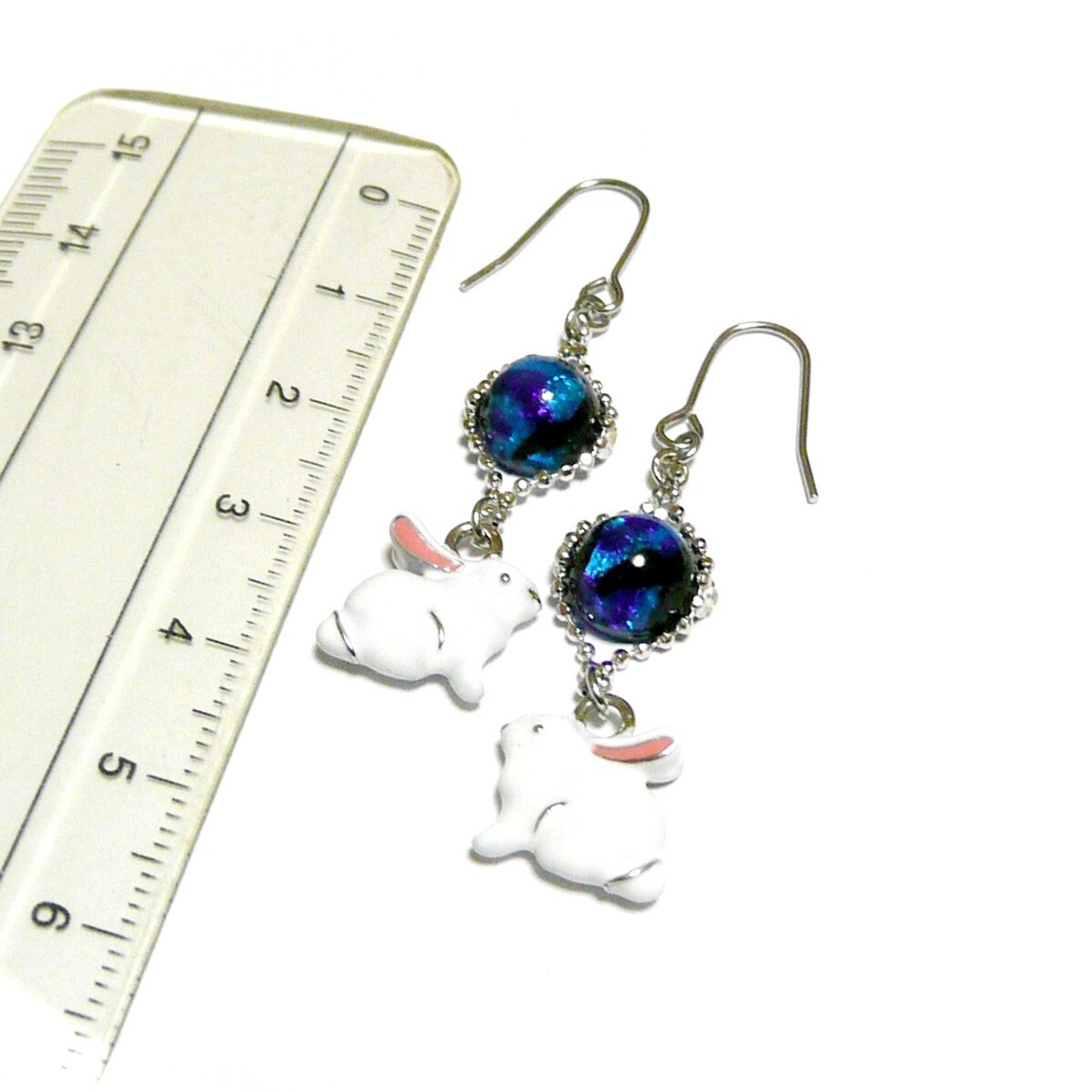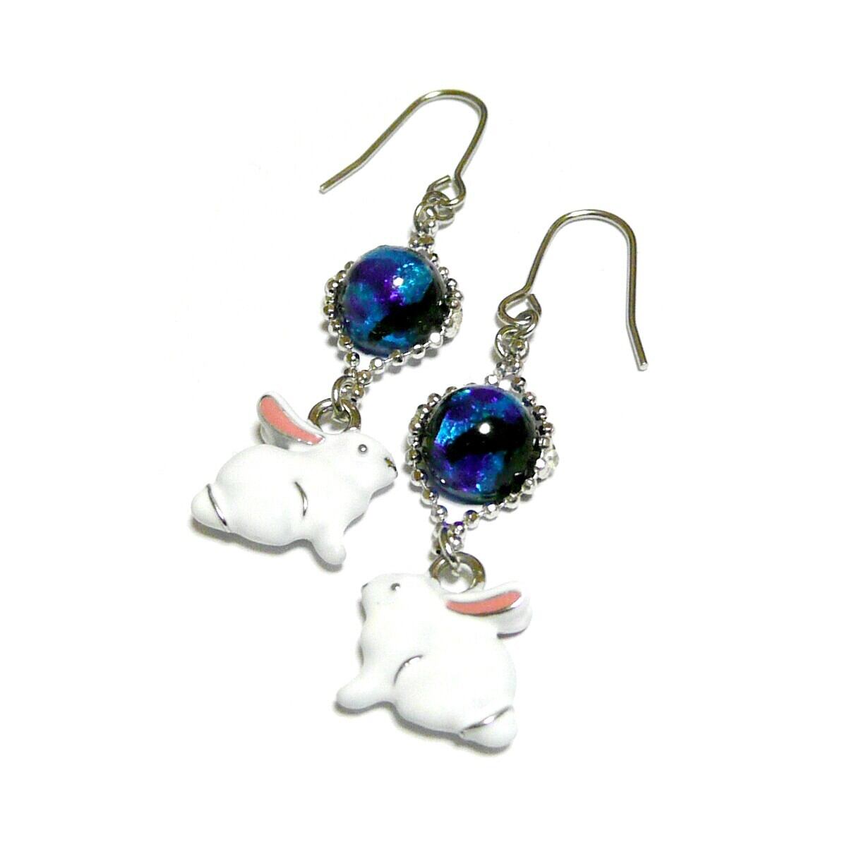 白いウサギのチャームと共に揺れるピアスです。