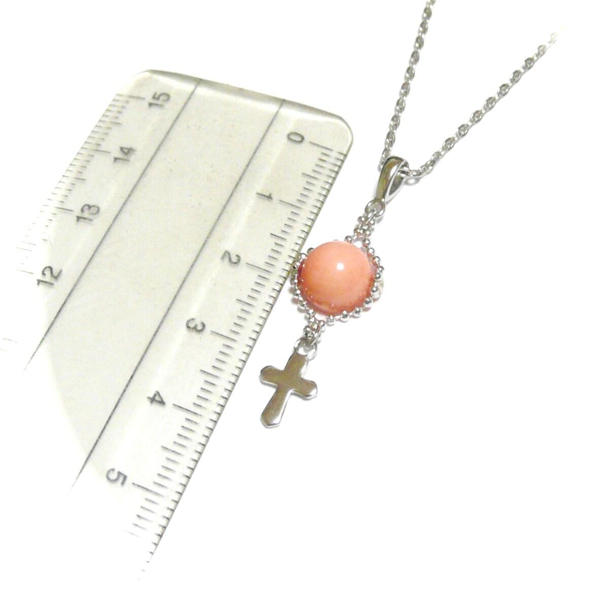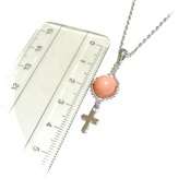 淡いピンクに染められたサンゴがボールチェーン枠に包まれ、