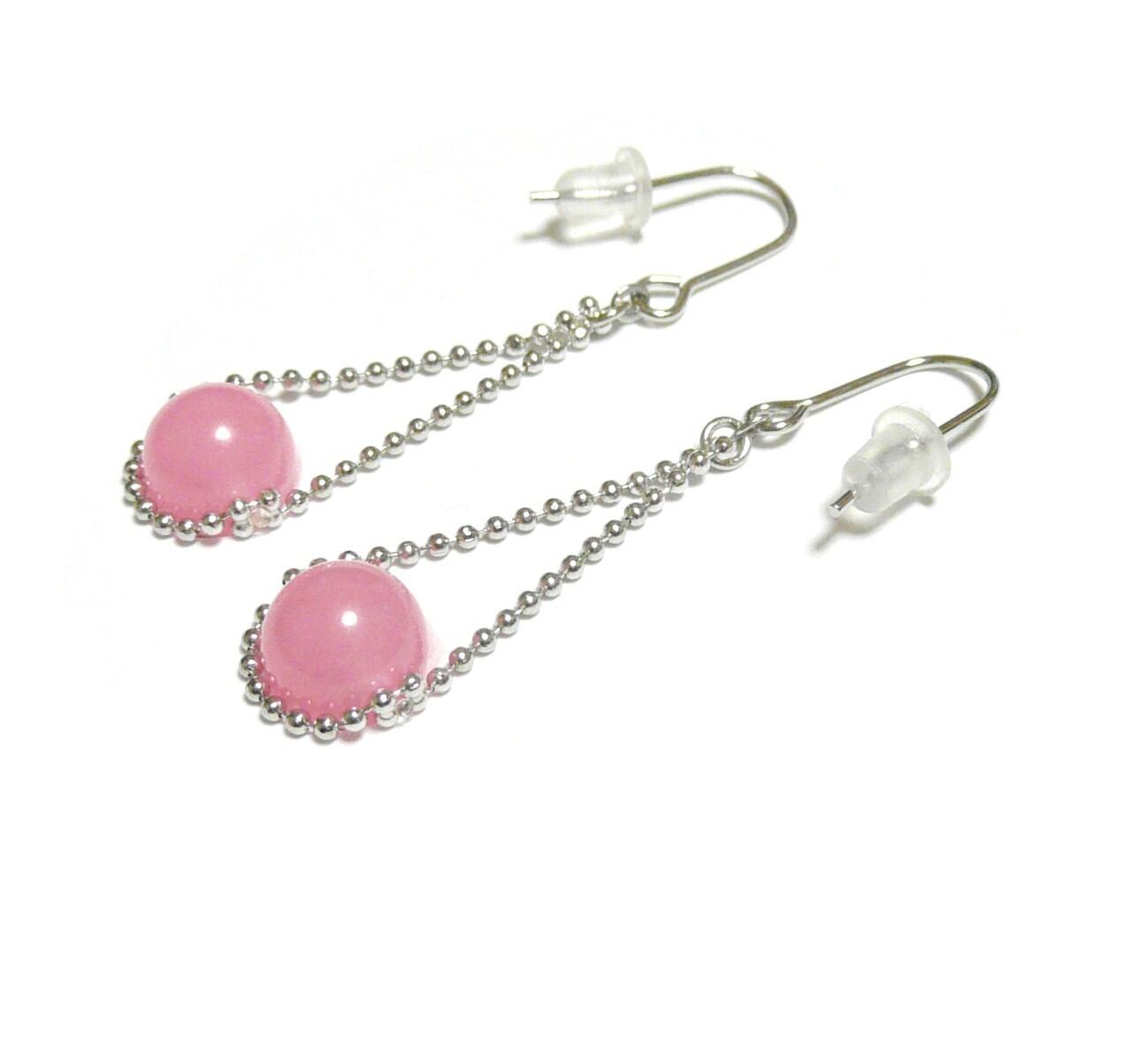ピンクカルセドニー(8mm丸珠)ピアス【ロングドロップ】
