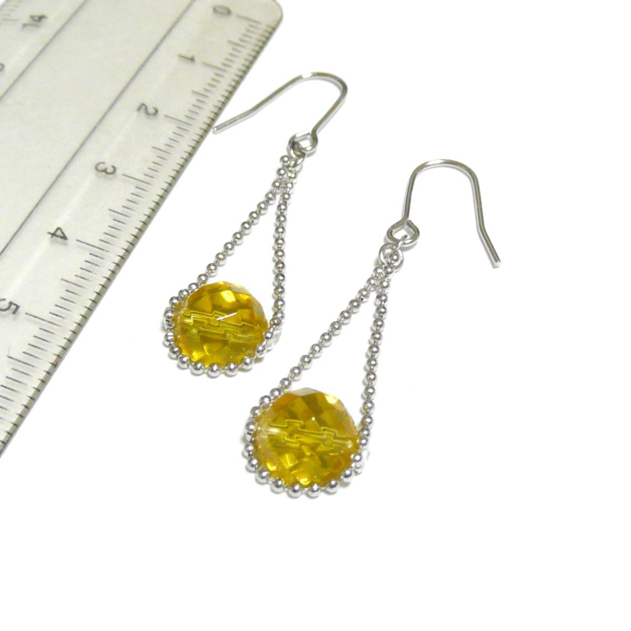 シトリン(8mmカット珠)ピアス【ロングドロップ】