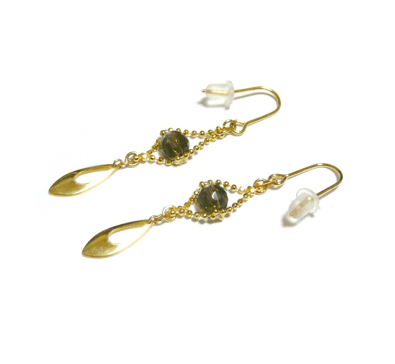 スモーキークォーツ(茶水晶/6mmカット珠)ピアス/ゴールドトーン【女王・アヴァンテ】