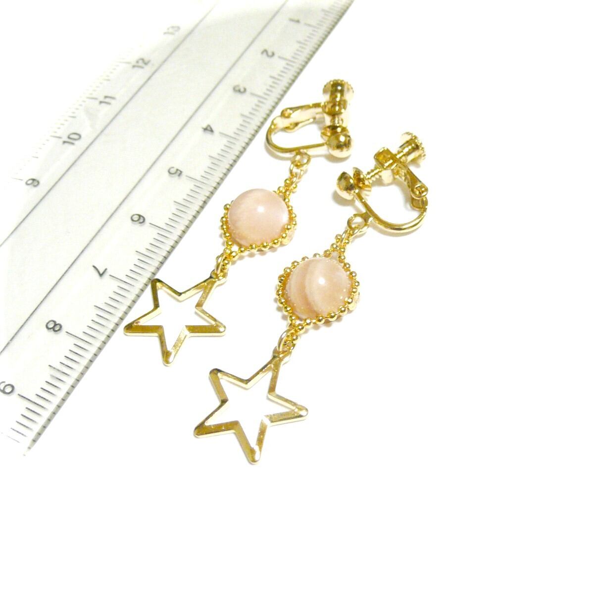 大きな星のチャームと共に揺れるイヤリングです。