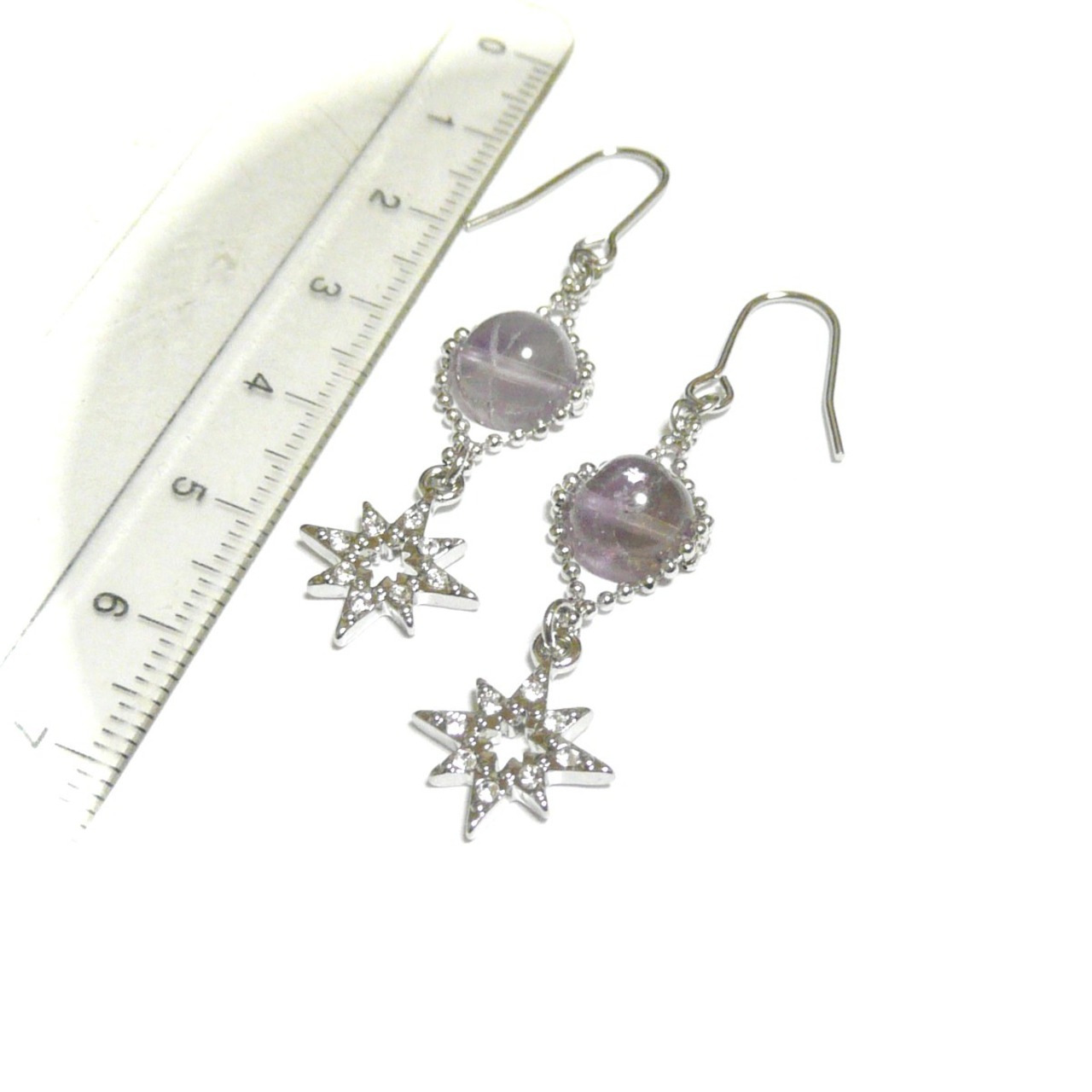 キュービックで彩られた星のチャームと共に揺れるピアスです。