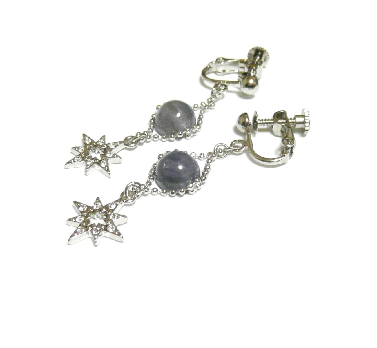 キュービックで彩られた星のチャームと共に揺れるイヤリングです。