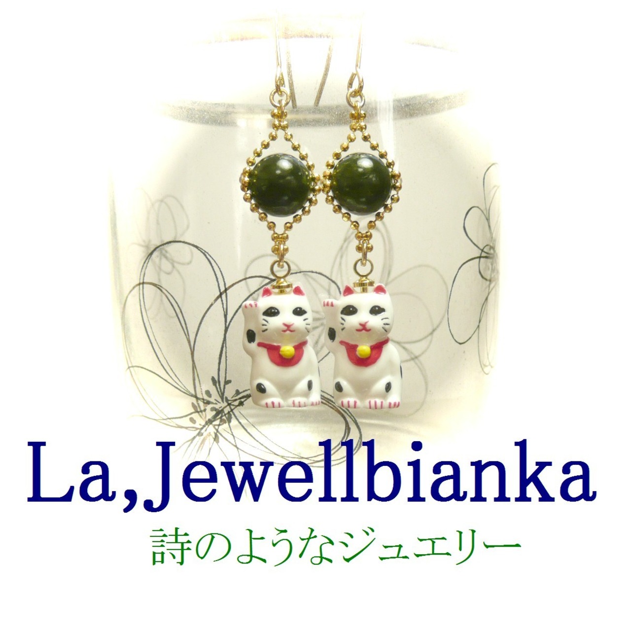 【招き猫】ネフライト/翡翠のピアス