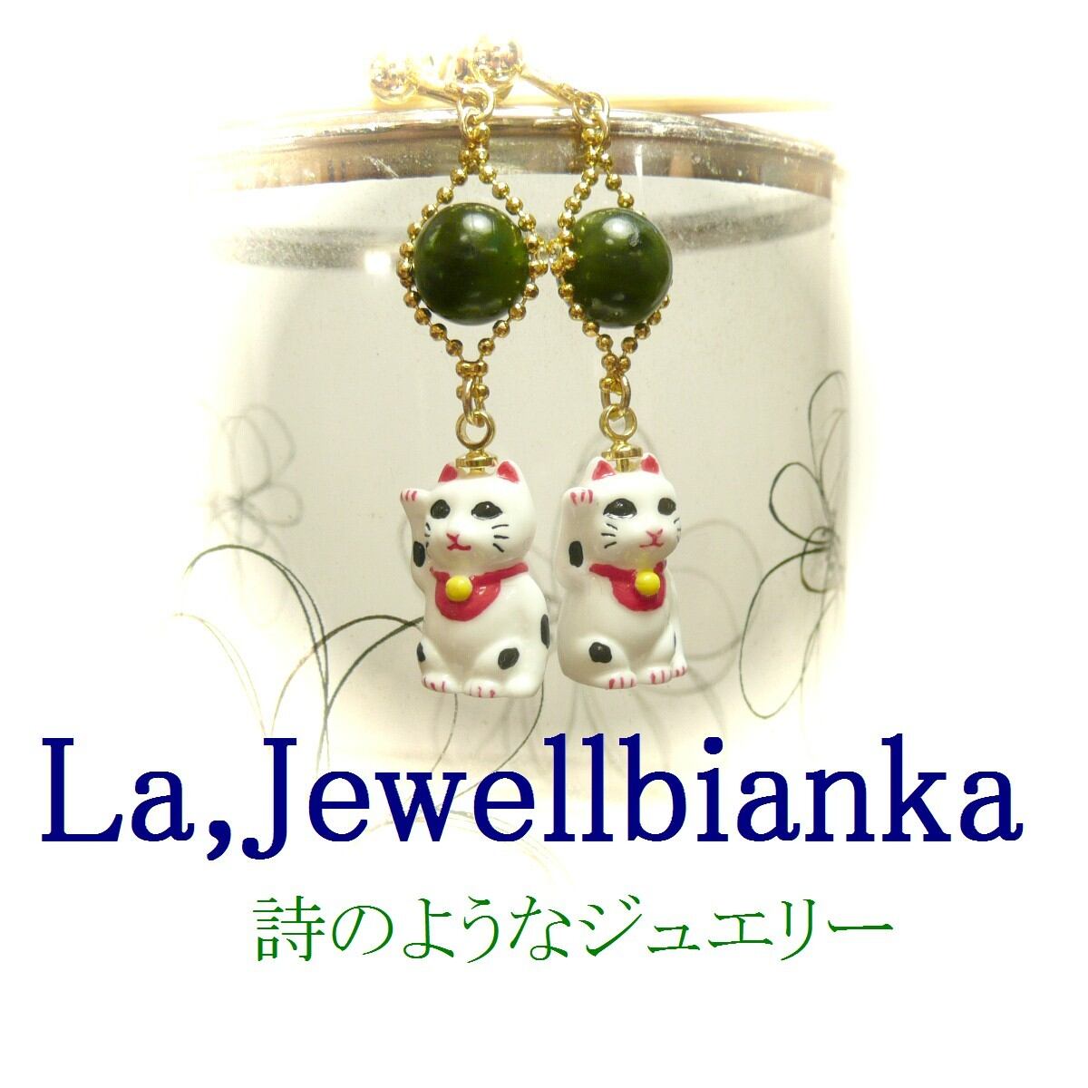 キュートな招き猫のチャームと共に揺れるイヤリングです。