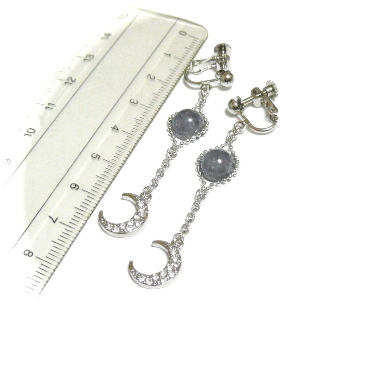 キュービック輝く三日月チャームと共に揺れるイヤリングです。