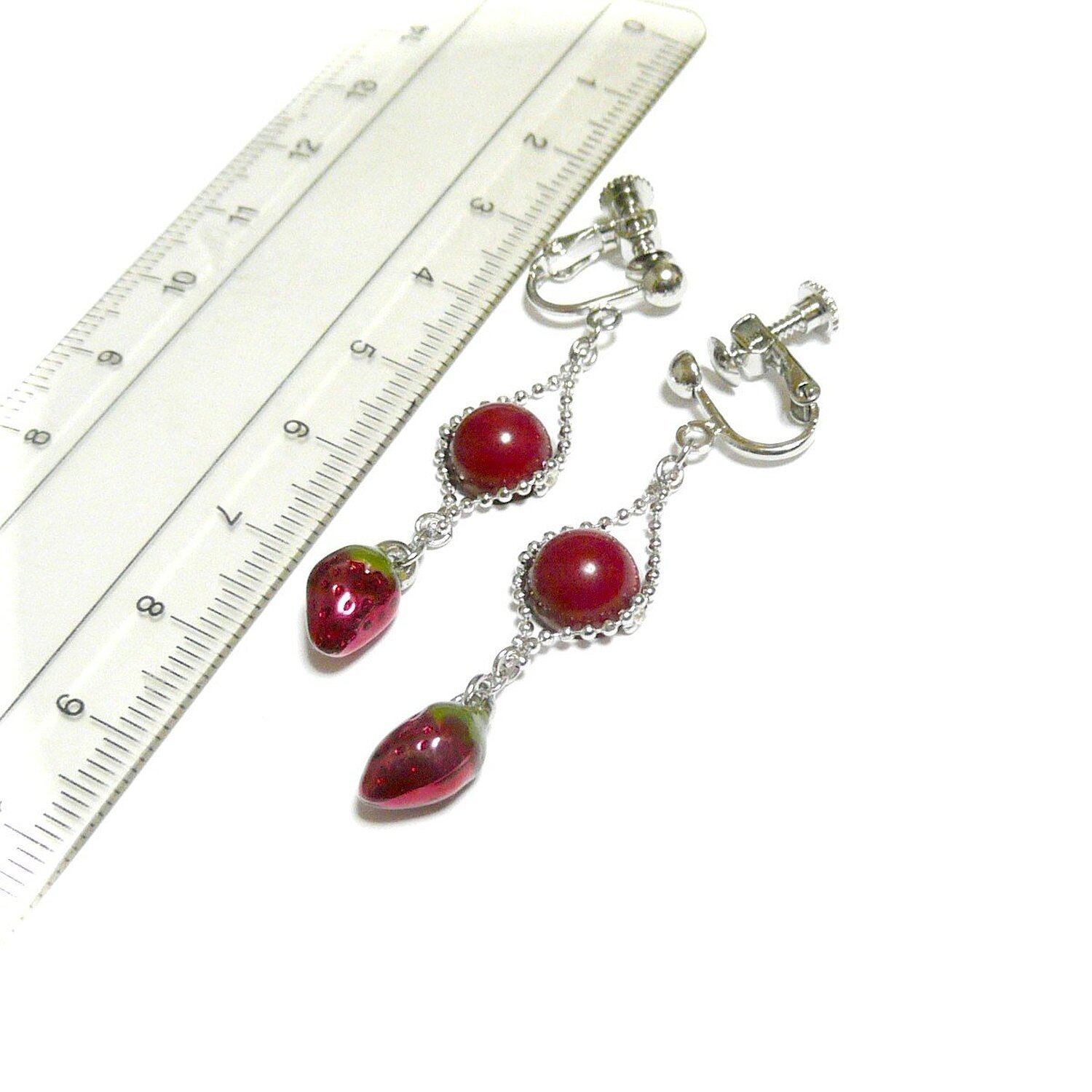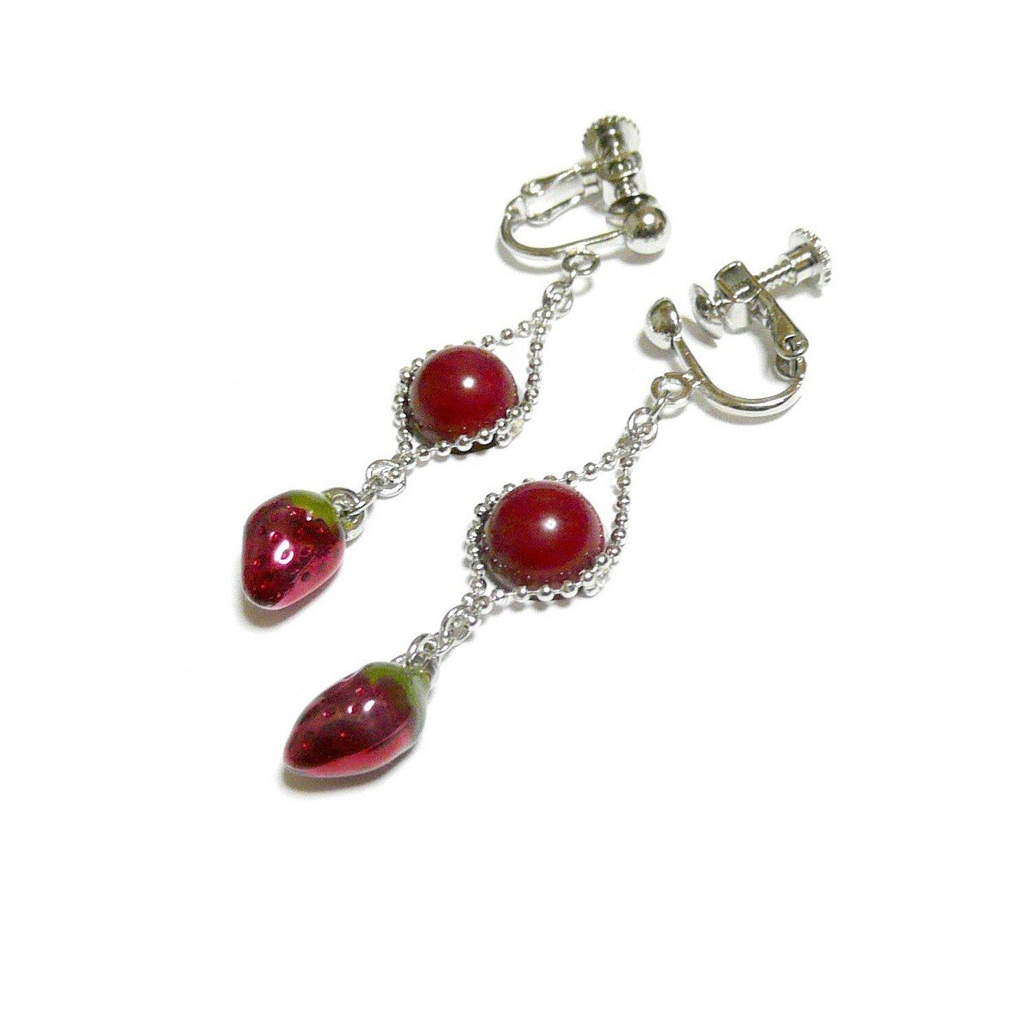 大きなイチゴのチャームと共に揺れるイヤリングです。