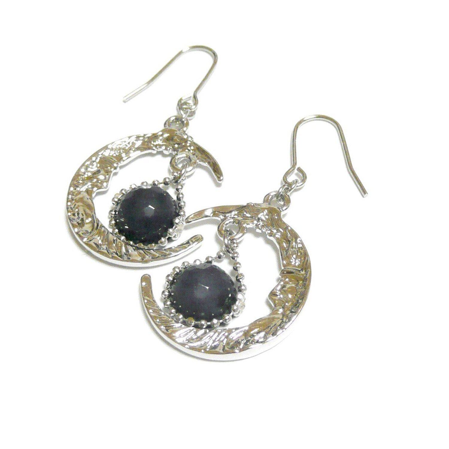印象的な三日月チャームに抱かれて揺れるピアスです。
