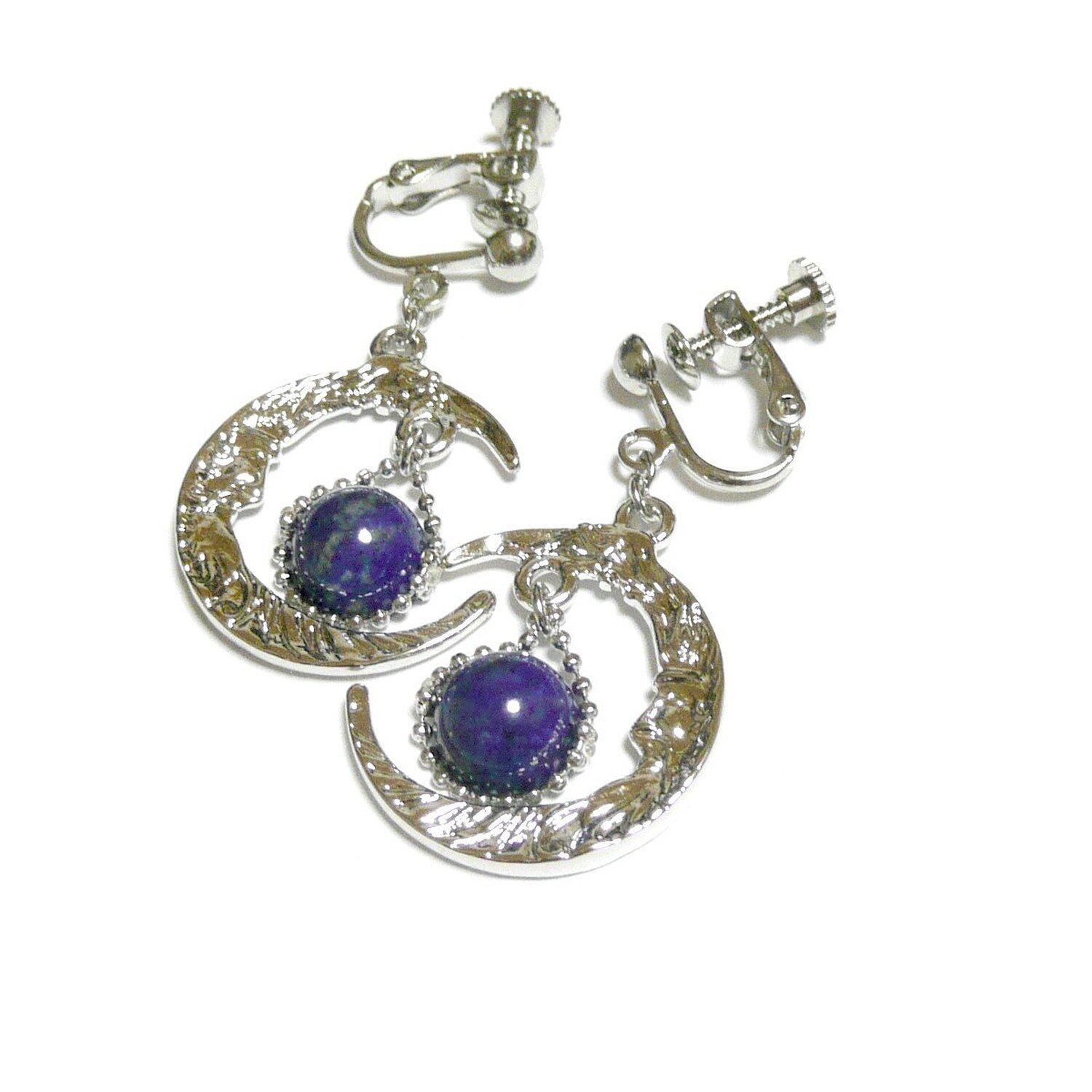 印象的な三日月チャームに抱かれて揺れるイヤリングです。