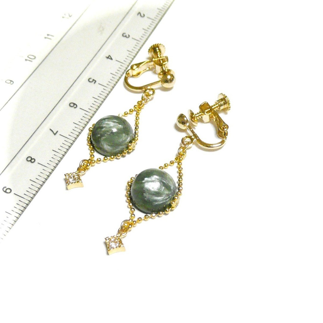 キュービックを留めたスクエアチャームと共に揺れるイヤリングです。