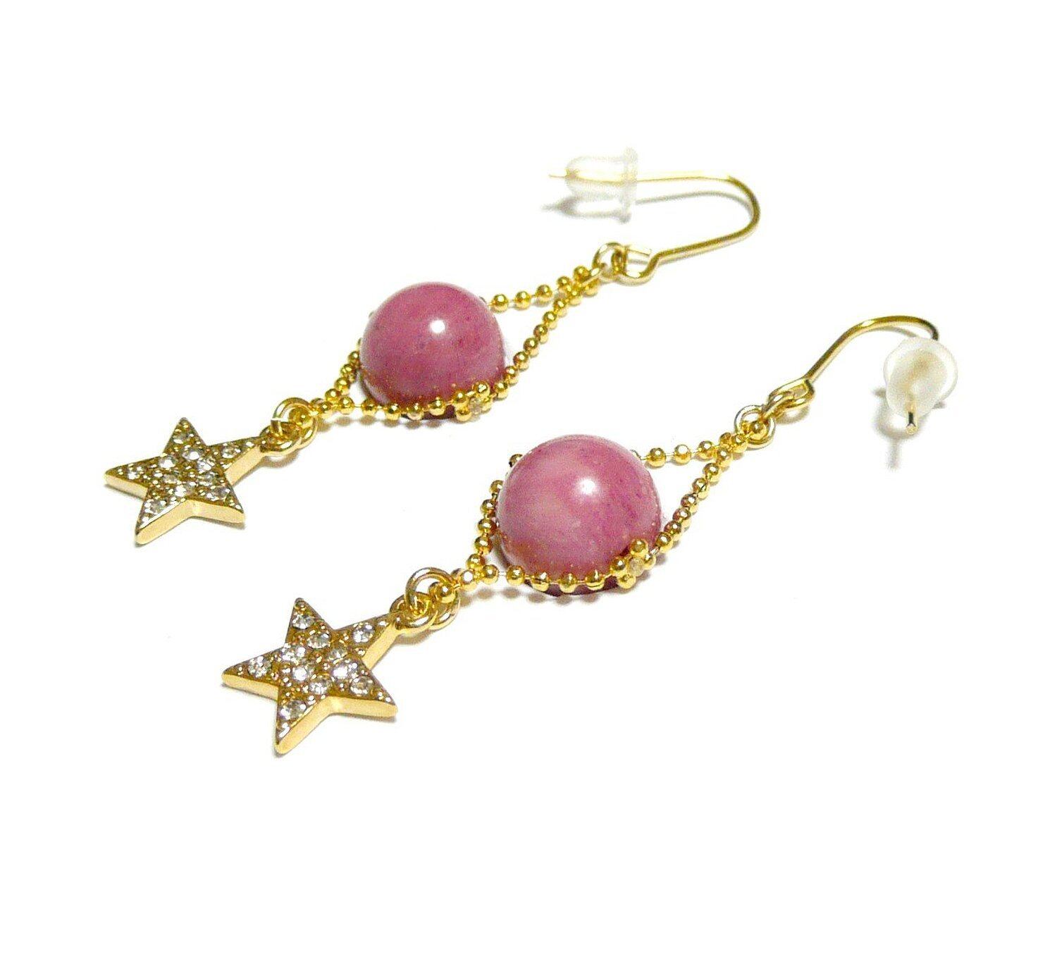 ・主体石:ロードナイト/薔薇輝石(10mm丸珠)×2