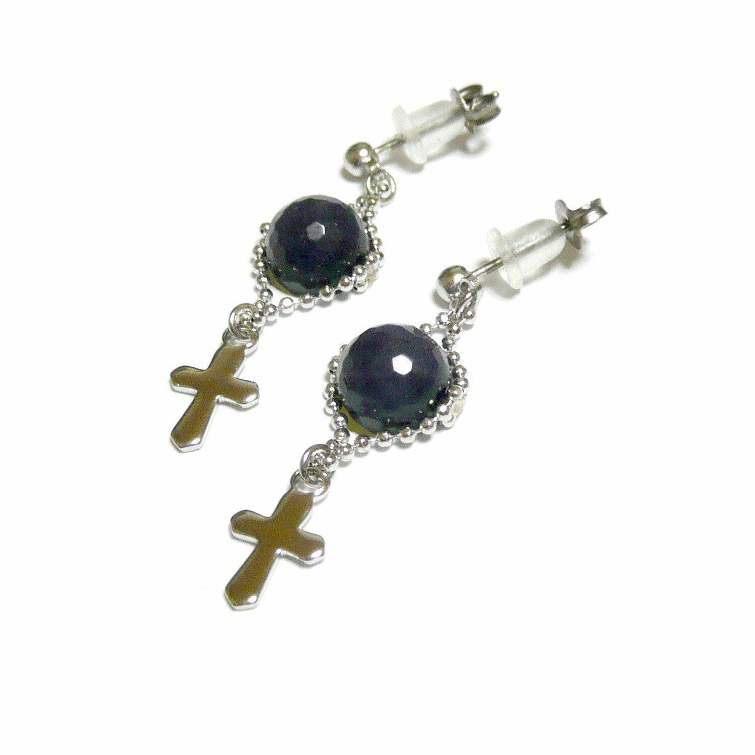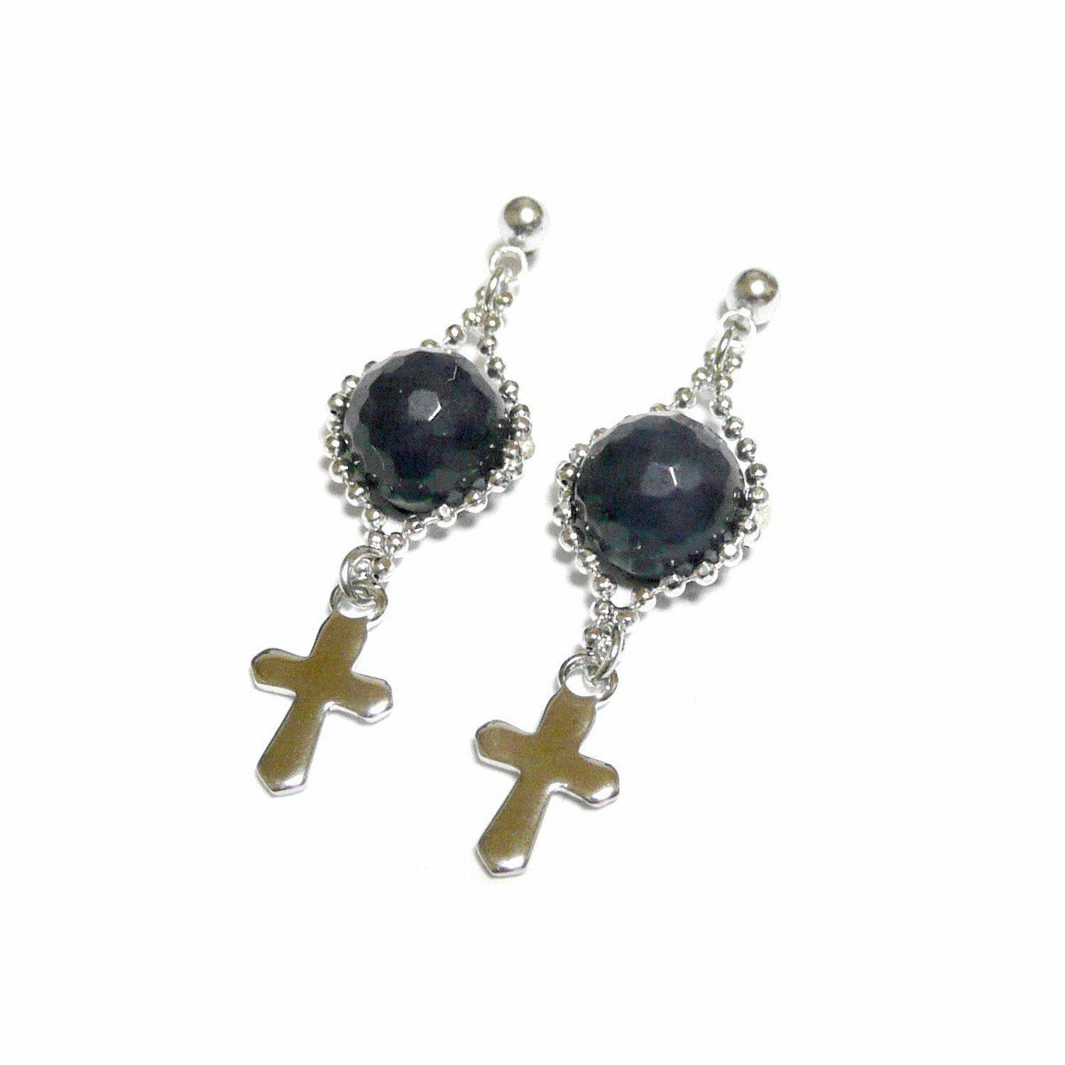 【クロス】サファイアと十字架のスタッドピアス