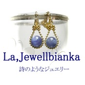 【馬蹄】カイヤナイト(8mm丸珠)イヤリング/ゴールドトーン
