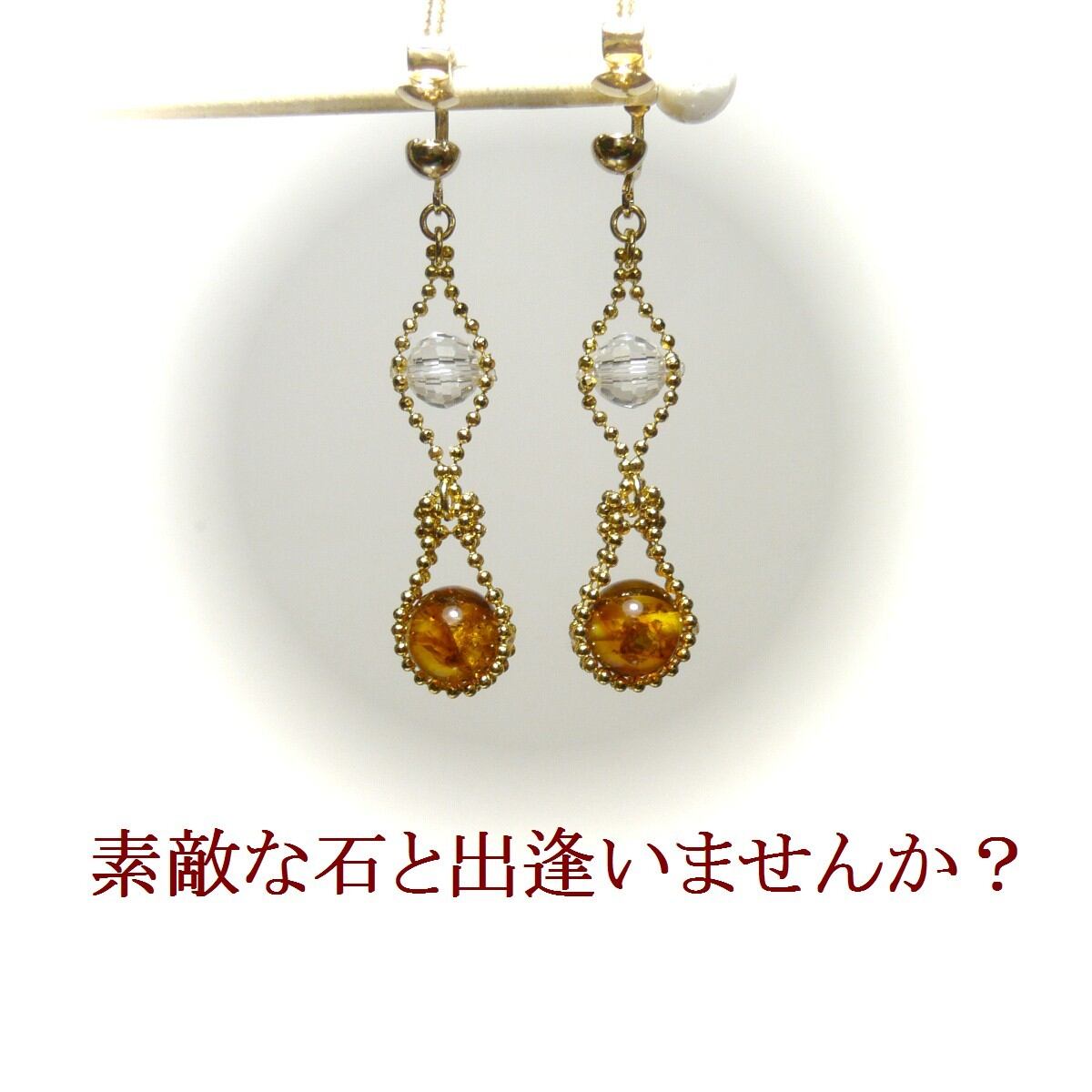 ・主体石1:琥珀/アンバー(8mm丸珠)×2、