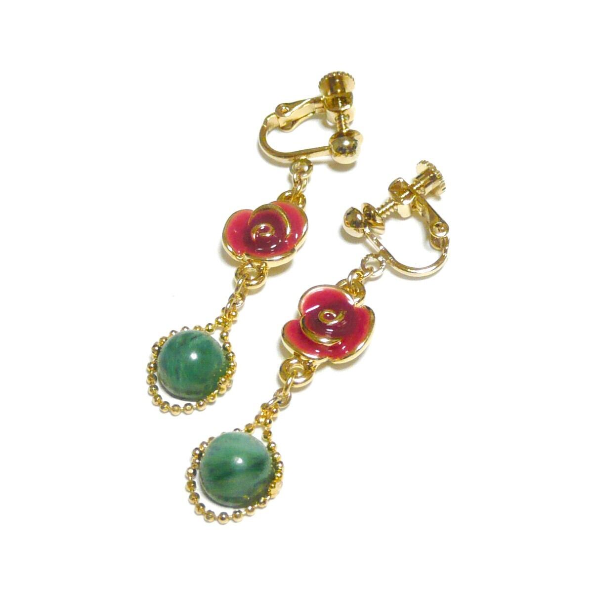 美しい薔薇のチャームと共に揺れるイヤリングです。