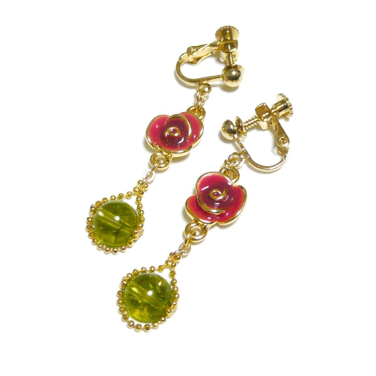美しい薔薇のチャームと共に揺れるイヤリングです。