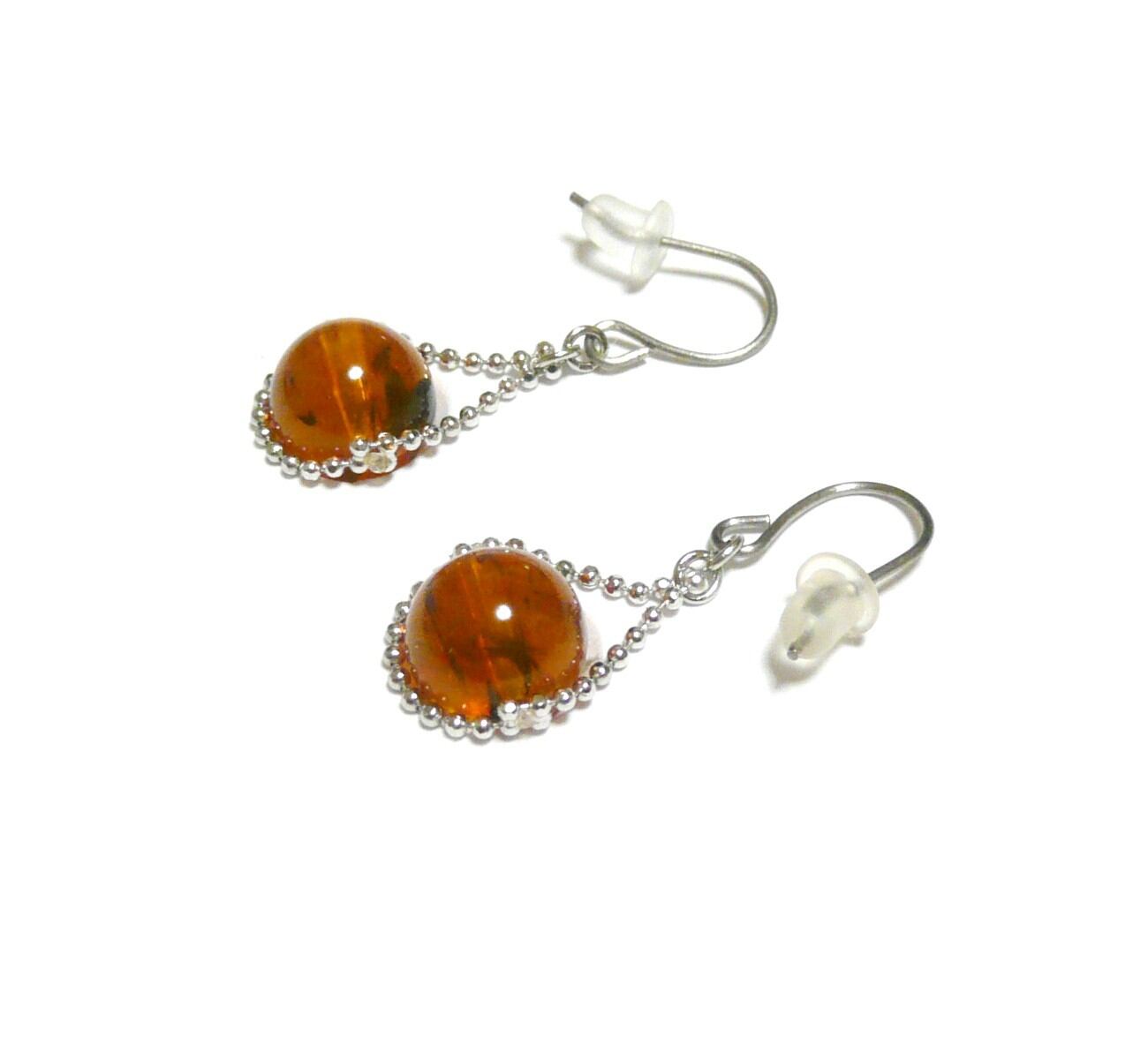 ・主体石:琥珀/アンバー(10mm丸珠)×2