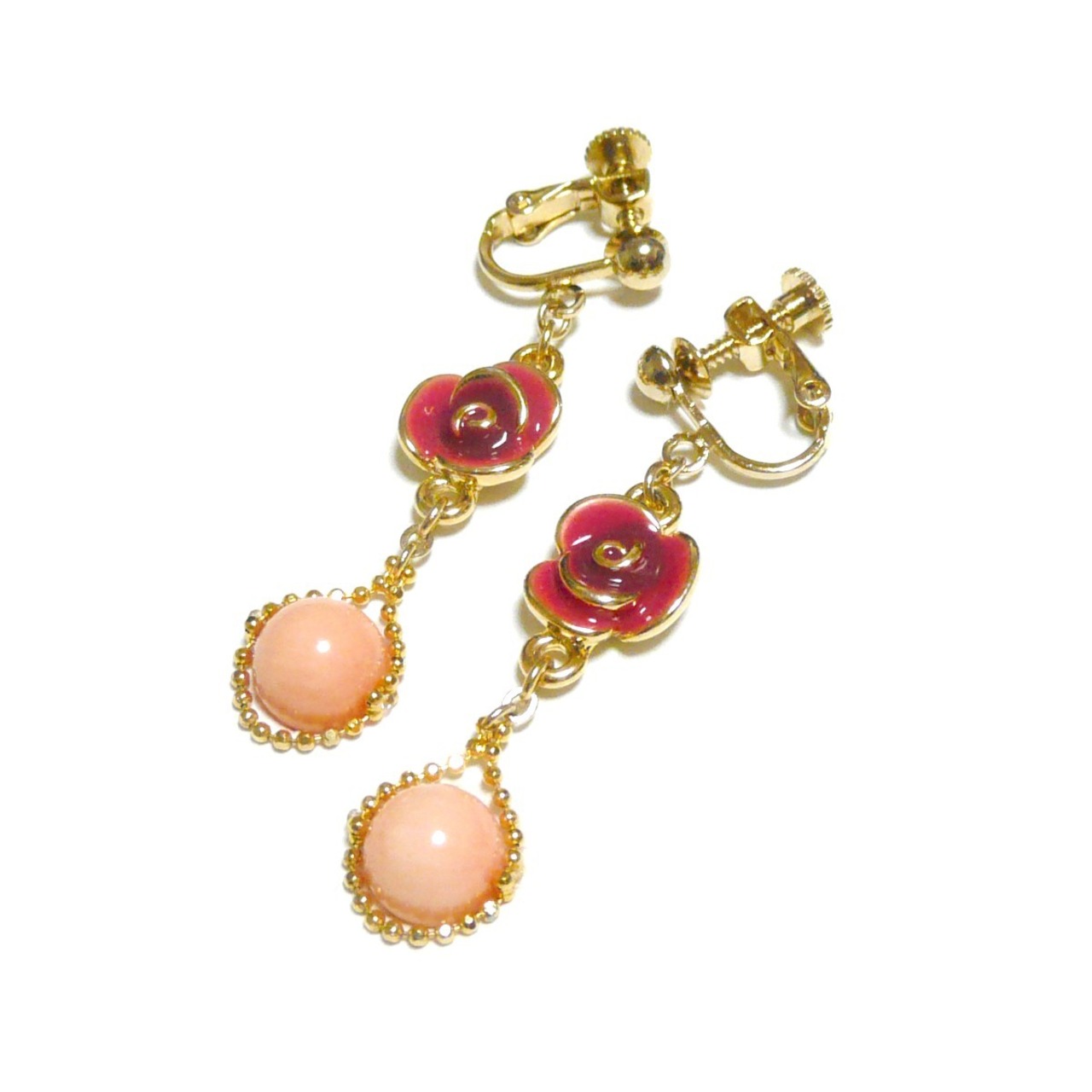 【赤い薔薇】ピンク珊瑚(8mm丸珠)イヤリング