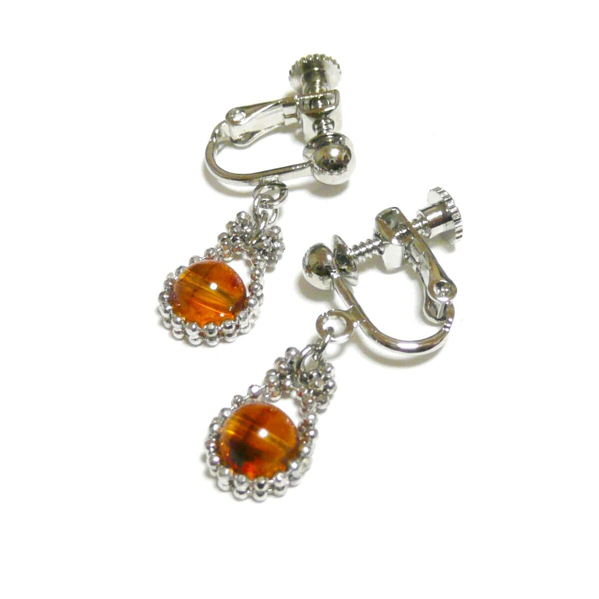 ・主体石:琥珀/アンバー(6mm丸珠)×2
