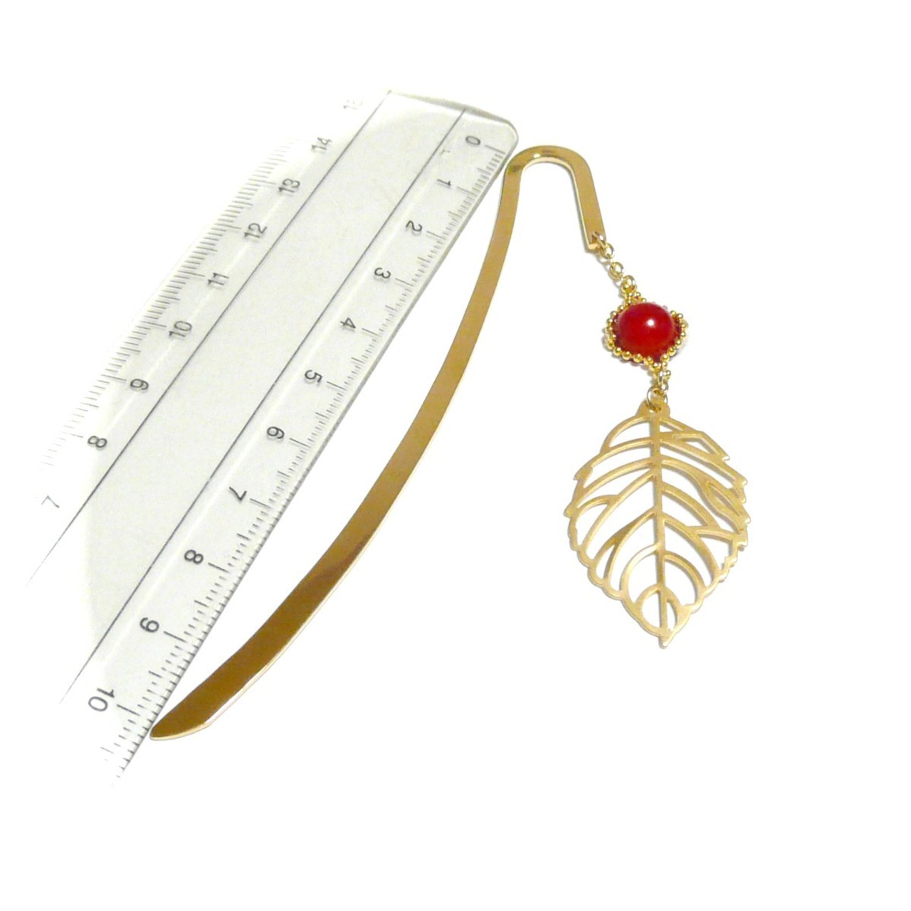 【萌える葉/栞】赤珊瑚のブックマーカー/ゴールドトーン