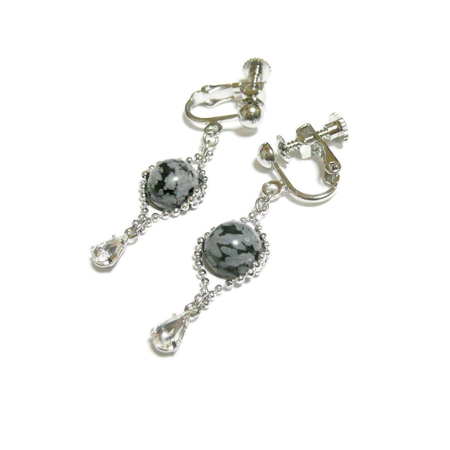 ・主体石:スノーフレークオプシディアン/黒曜石(8mm丸珠)×2