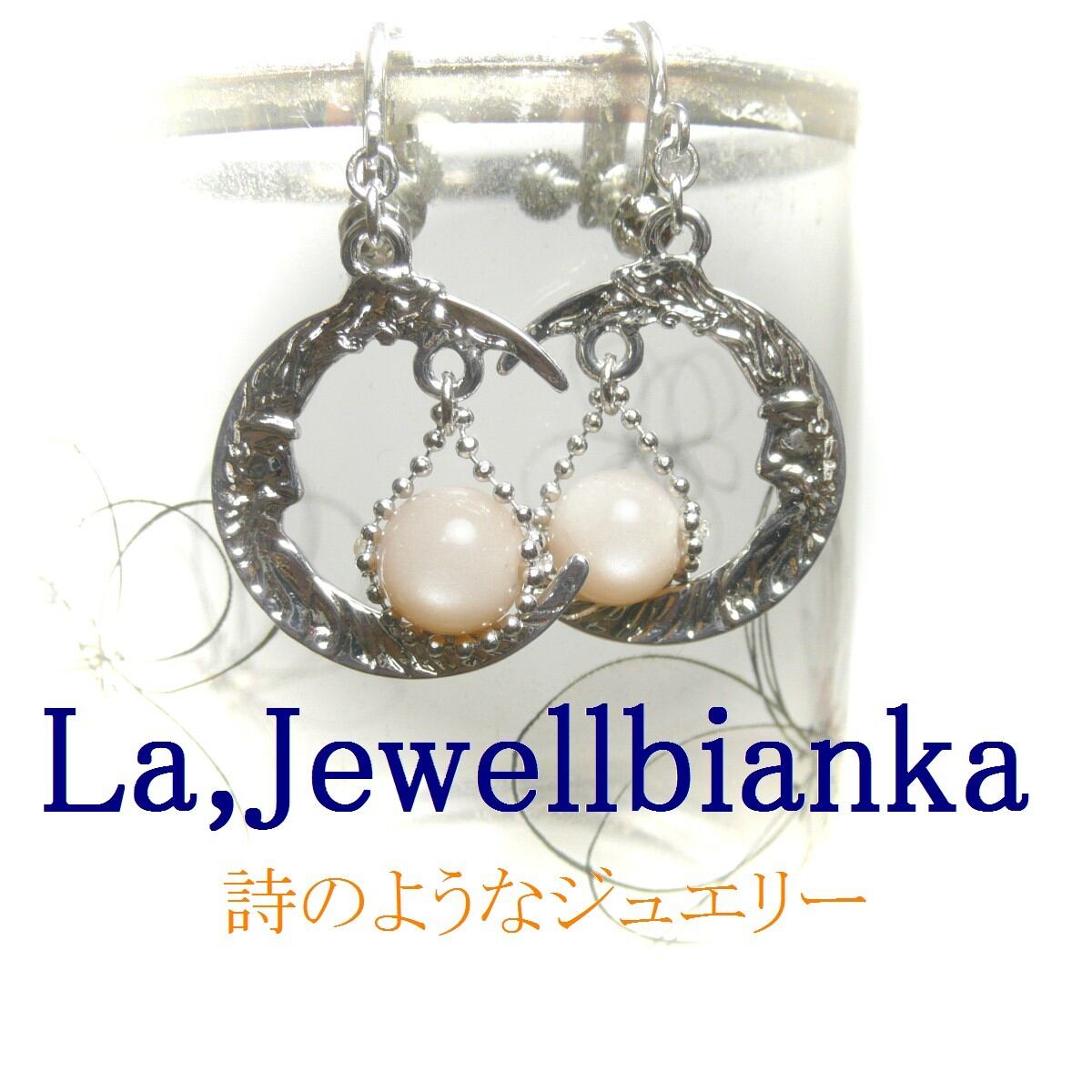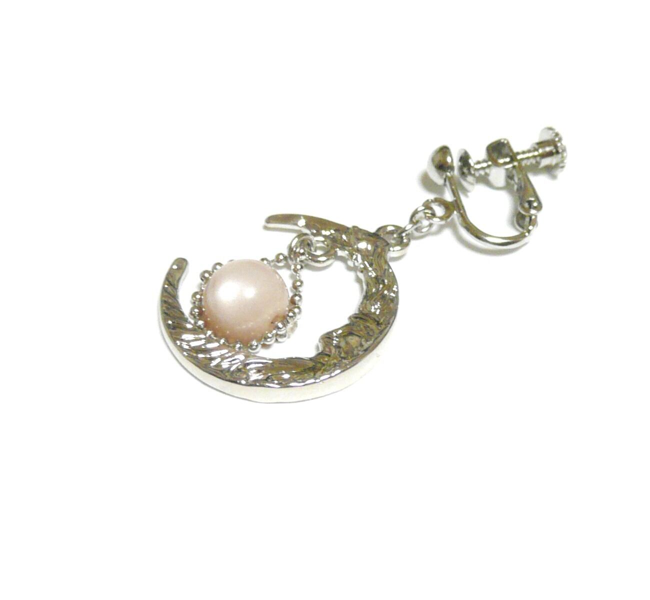 印象的な三日月チャームに抱かれて揺れるイヤリングです。