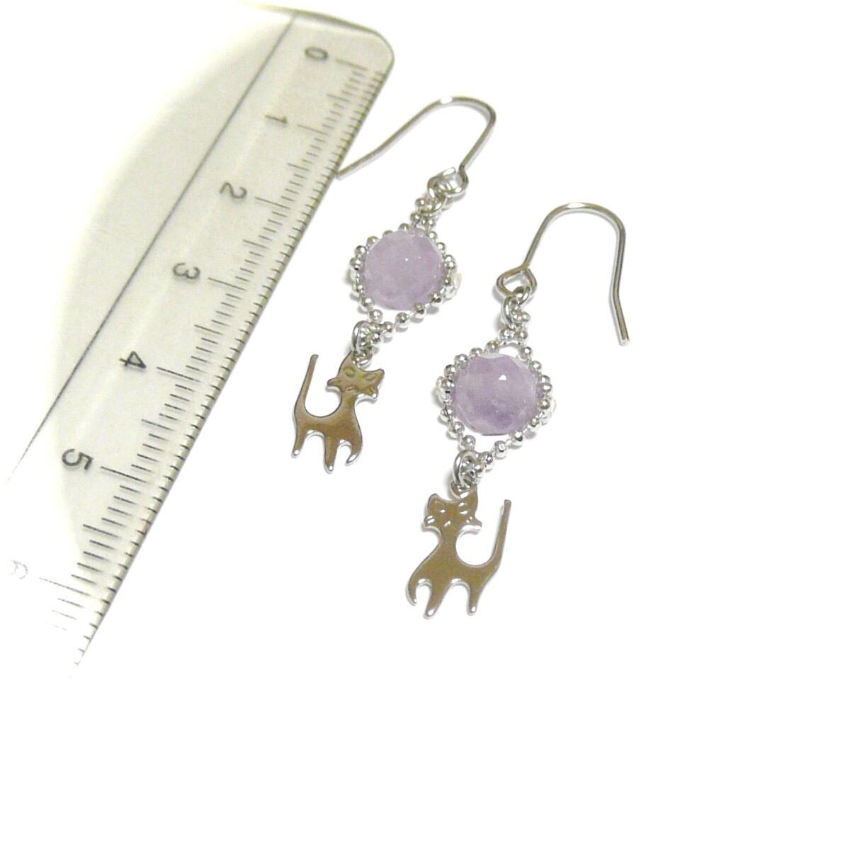 小さな小さなネコのチャームと共に揺れるピアスです。