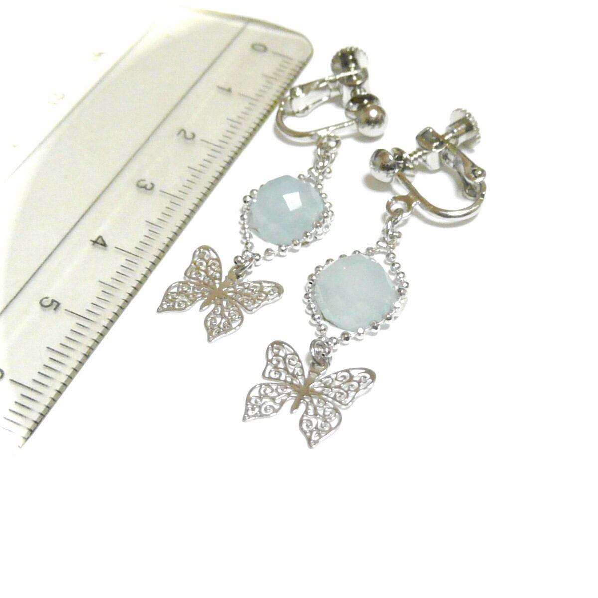 【ふわりバタフライ】アクアマリンと軽やかな蝶のイヤリング
