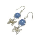 【ふわりバタフライ】ブルーカルセドニーと軽やかな蝶のピアス