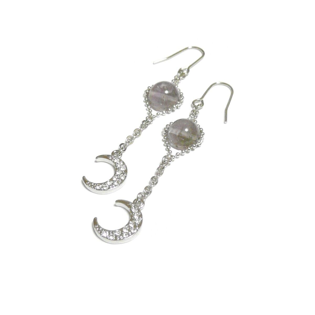 キュービック輝く三日月チャームと共に揺れるピアスです。