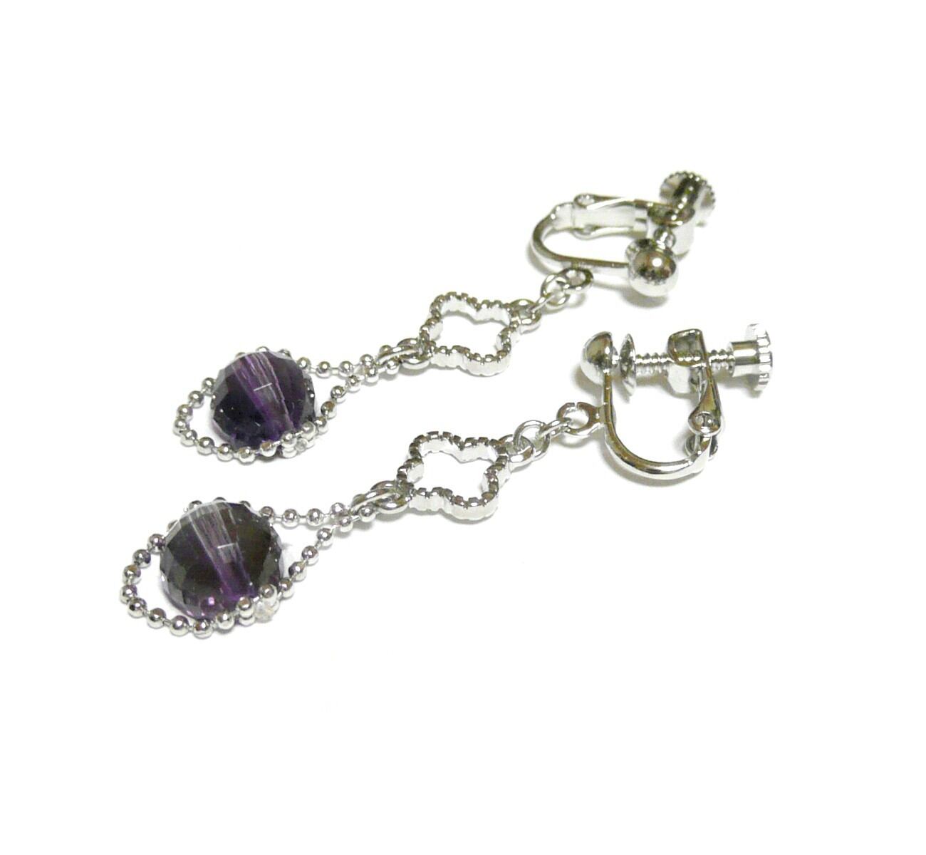 クローバーモチーフのチャームと共に揺れるイヤリングです。