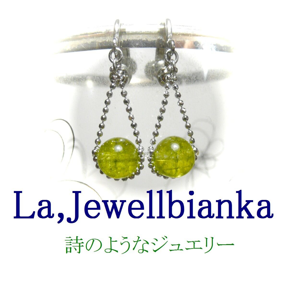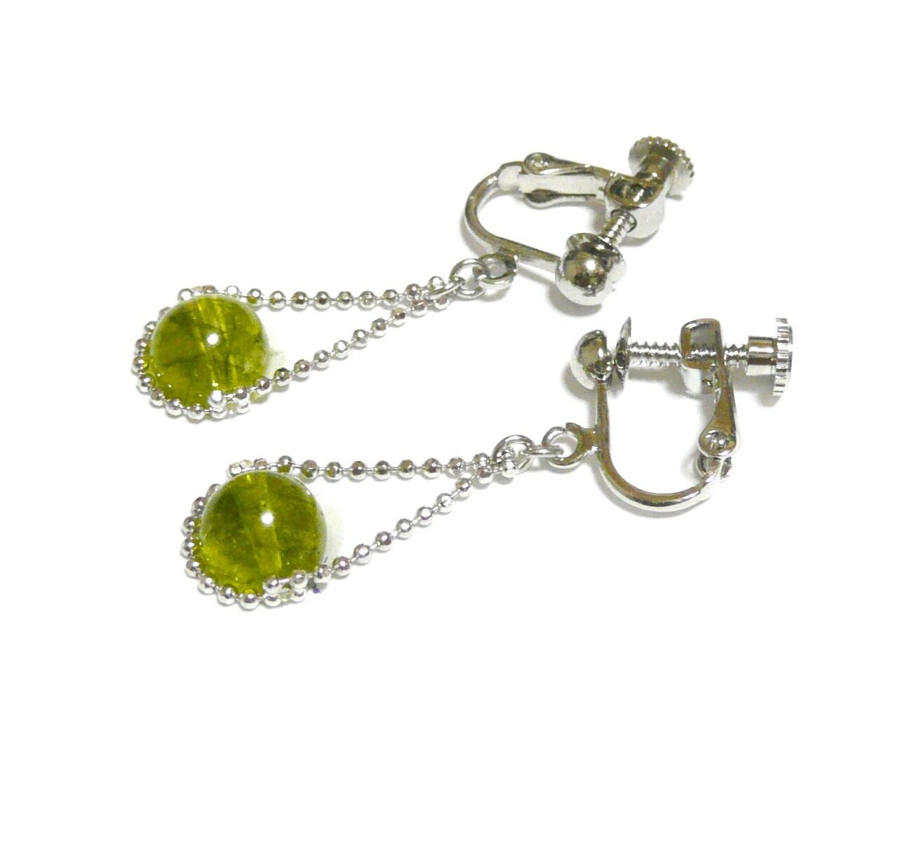穏やかな緑に澄んだペリドットがボールチェーンに包まれて、