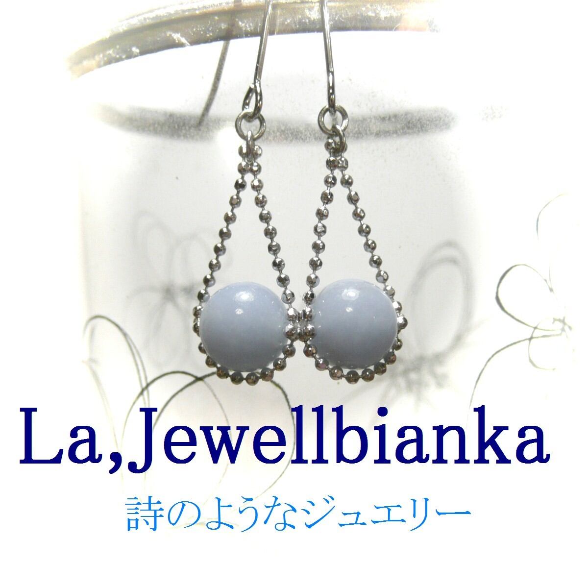 穏やかなブルーのエンジェライトがボールチェーンに包まれて、