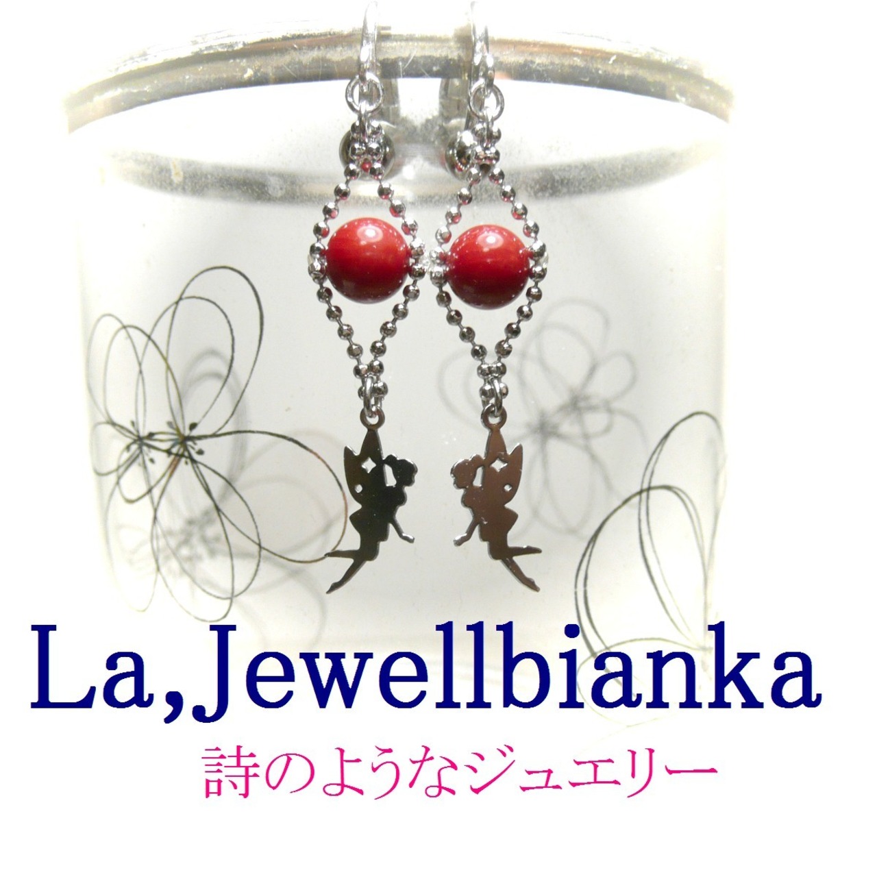 【ティンカーベル】赤珊瑚と妖精のイヤリング