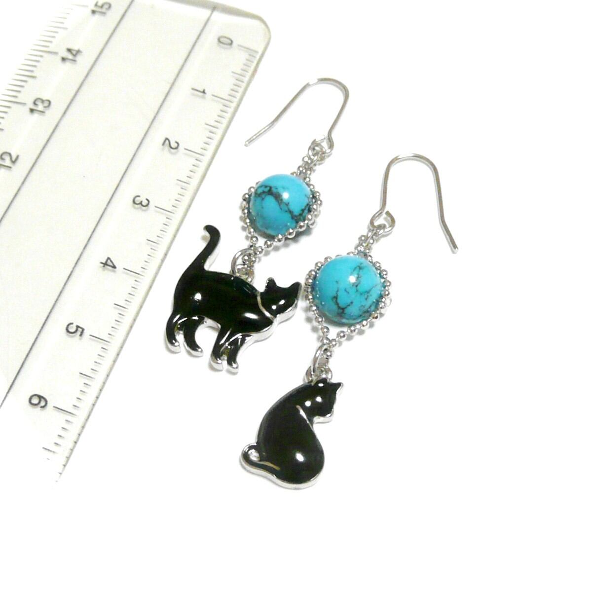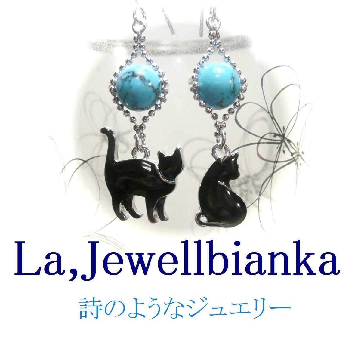 キュートな猫のチャームと共に揺れるアシンメトリーピアスです。