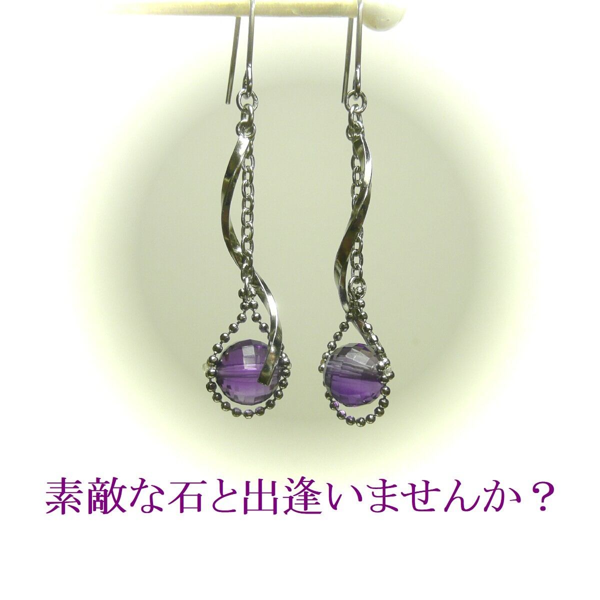 ・主体石:アメジスト(紫水晶/8mmミラーカット珠)×2
