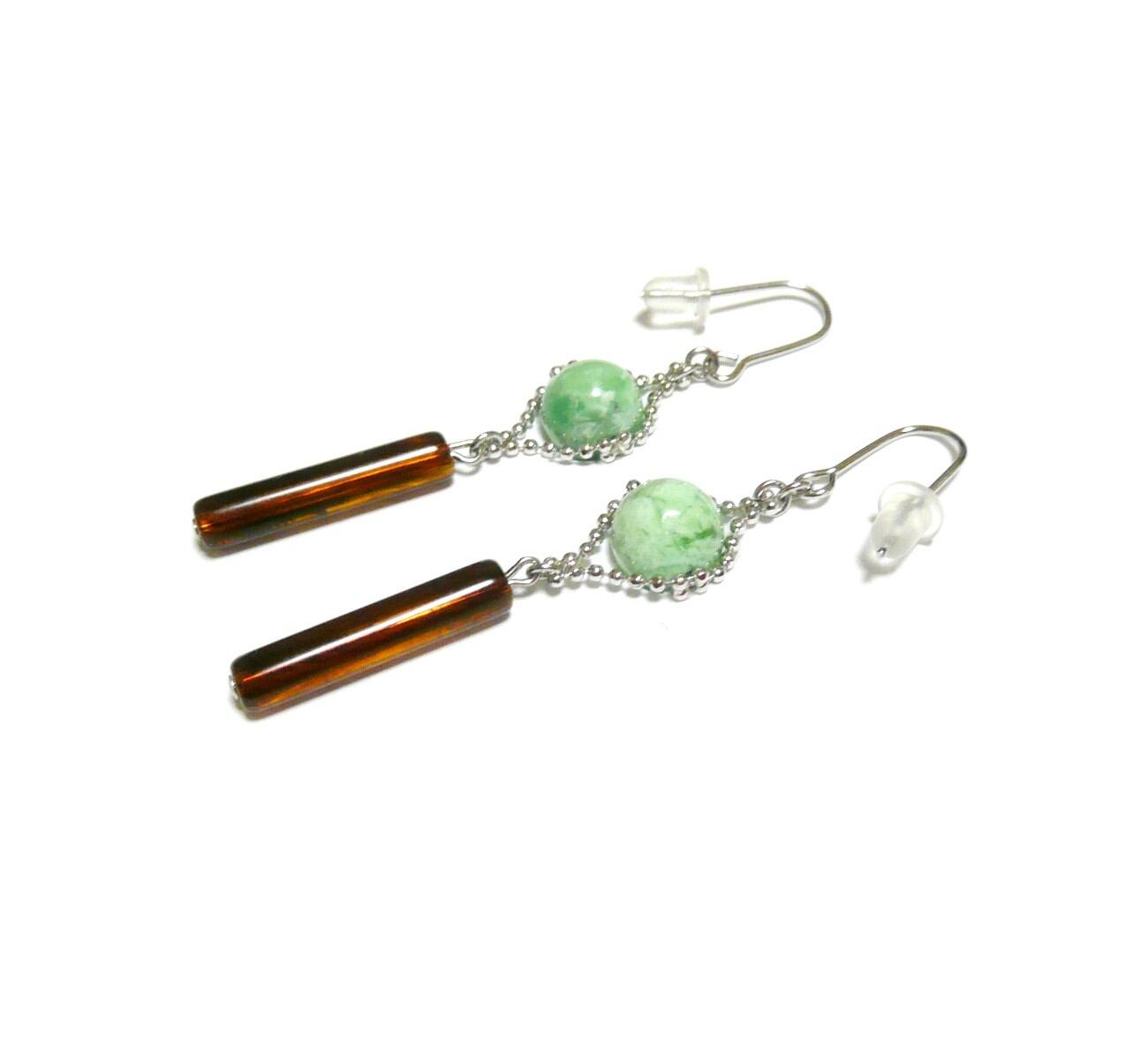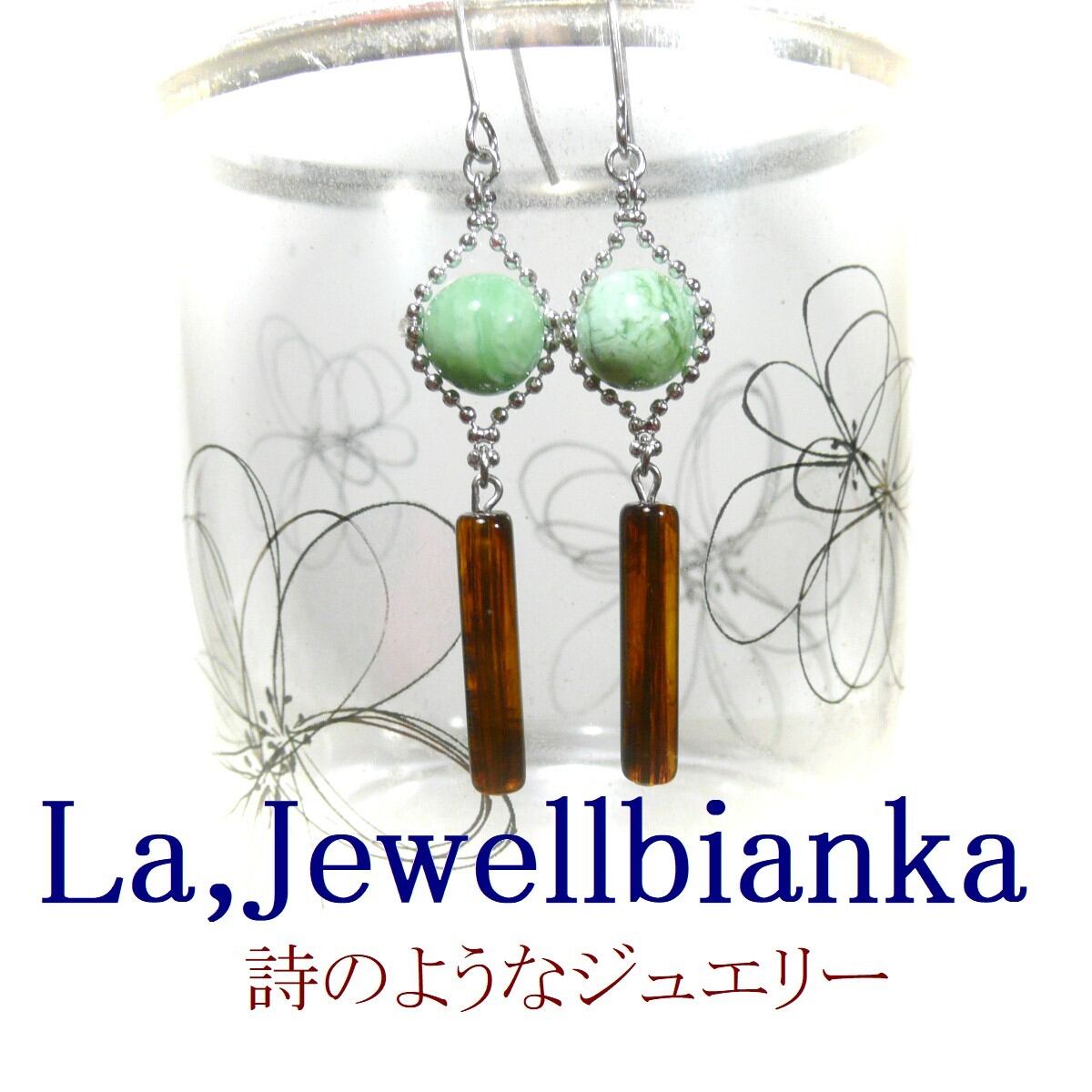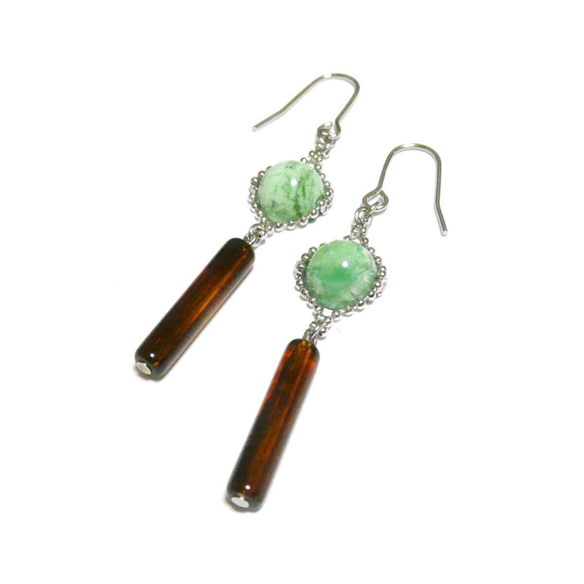 美しいコハクのスティックと共に揺れるピアスです。