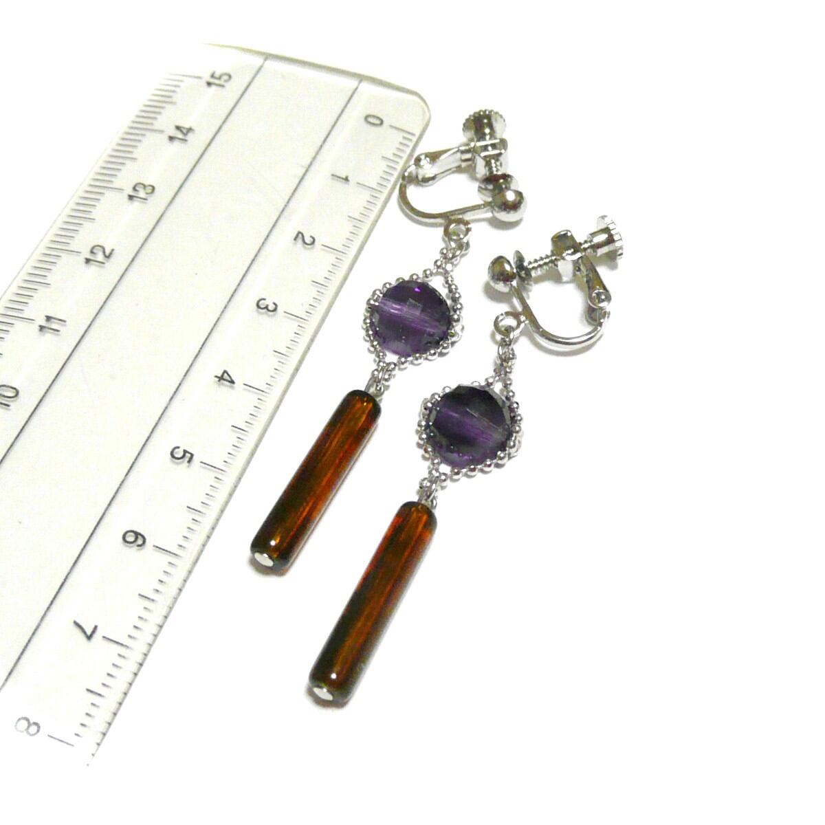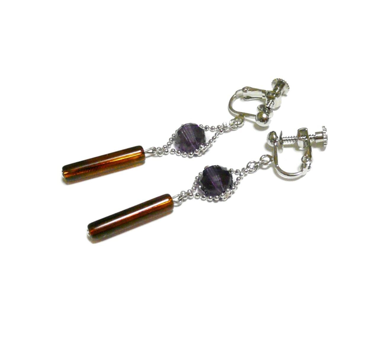 美しいコハクのスティックと共に揺れるイヤリングです。